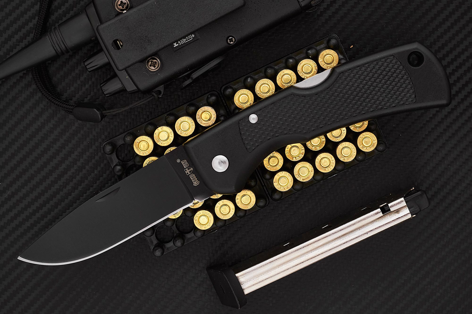 Клинок изготовлен из 420 нержавеющей стали, чьи положительные стороны дополняются защитно-декоративным покрытием черного цвета. Значительная клинка толщина в обухе – 4 миллиметра, снабжает нас дополнительной уверенностью в надежности этого ножа. Клинками из данной марки стали характерна коррозиестойкость и легкость заточки даже в полевых условиях.