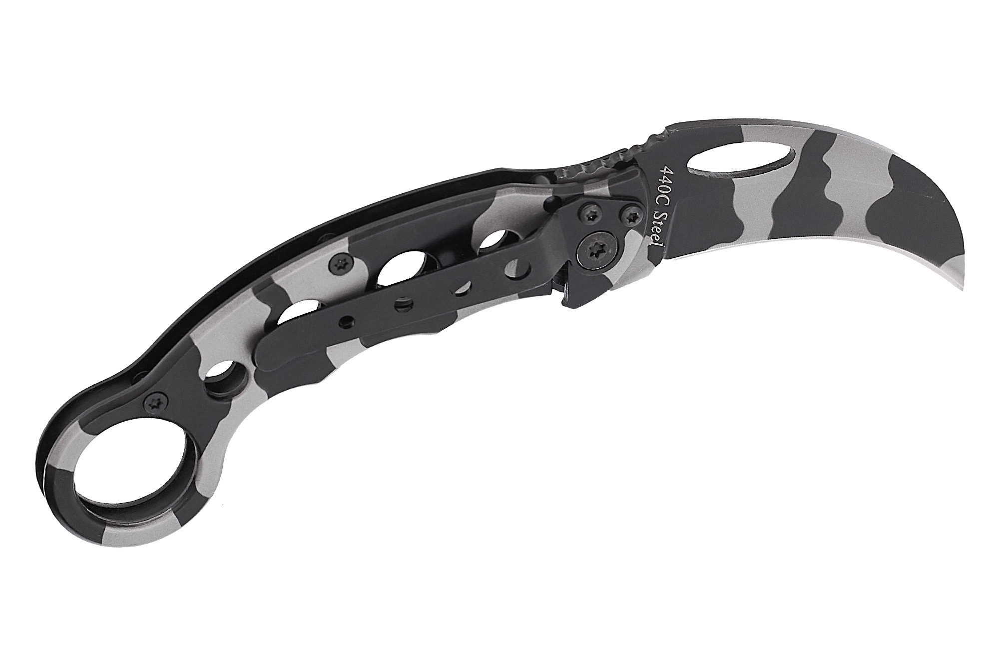 - Клинок виготовлений із нержавіючої сталі марки 440С. Цей міцний, стійкий до корозії та легкий у заточуванні та обслуговуванні матеріал використовується для виготовлення ножів із середини ХХ століття. Популярність його не слабшає досі.