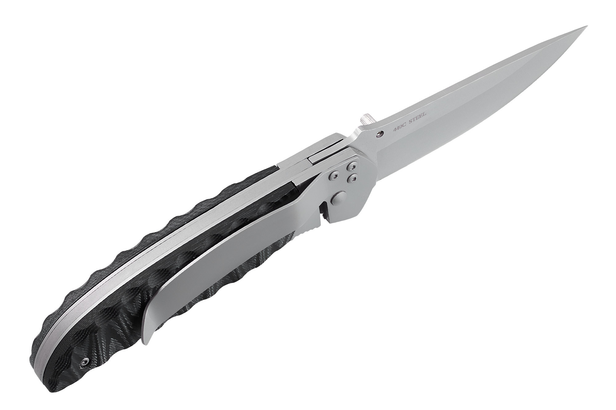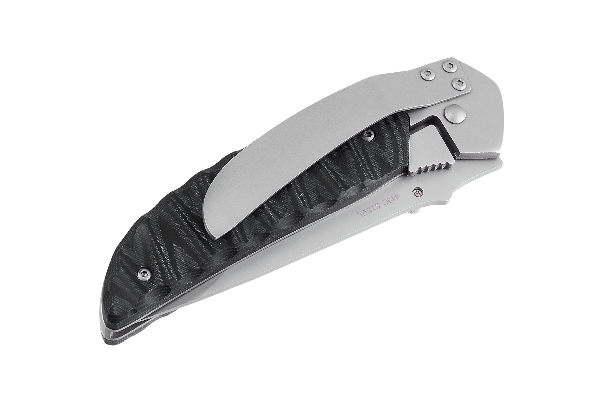 Складной многоцелевой нож в современном стиле. Клинок этого ножа изготовлен из стали марки 440С. Сталь 440с является современной высокоуглеродистой нержавеющей сталью. Визитная карточка 440С высокая износостойкость и твердость, которая обеспечивается высоким содержанием углерода и легированием молибденом и ванадием. Химическую стойкость стали придает высокое содержание хрома, придающего дополнительную износостойкость.