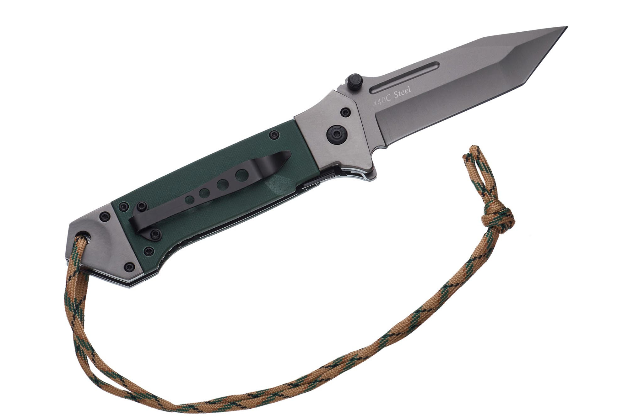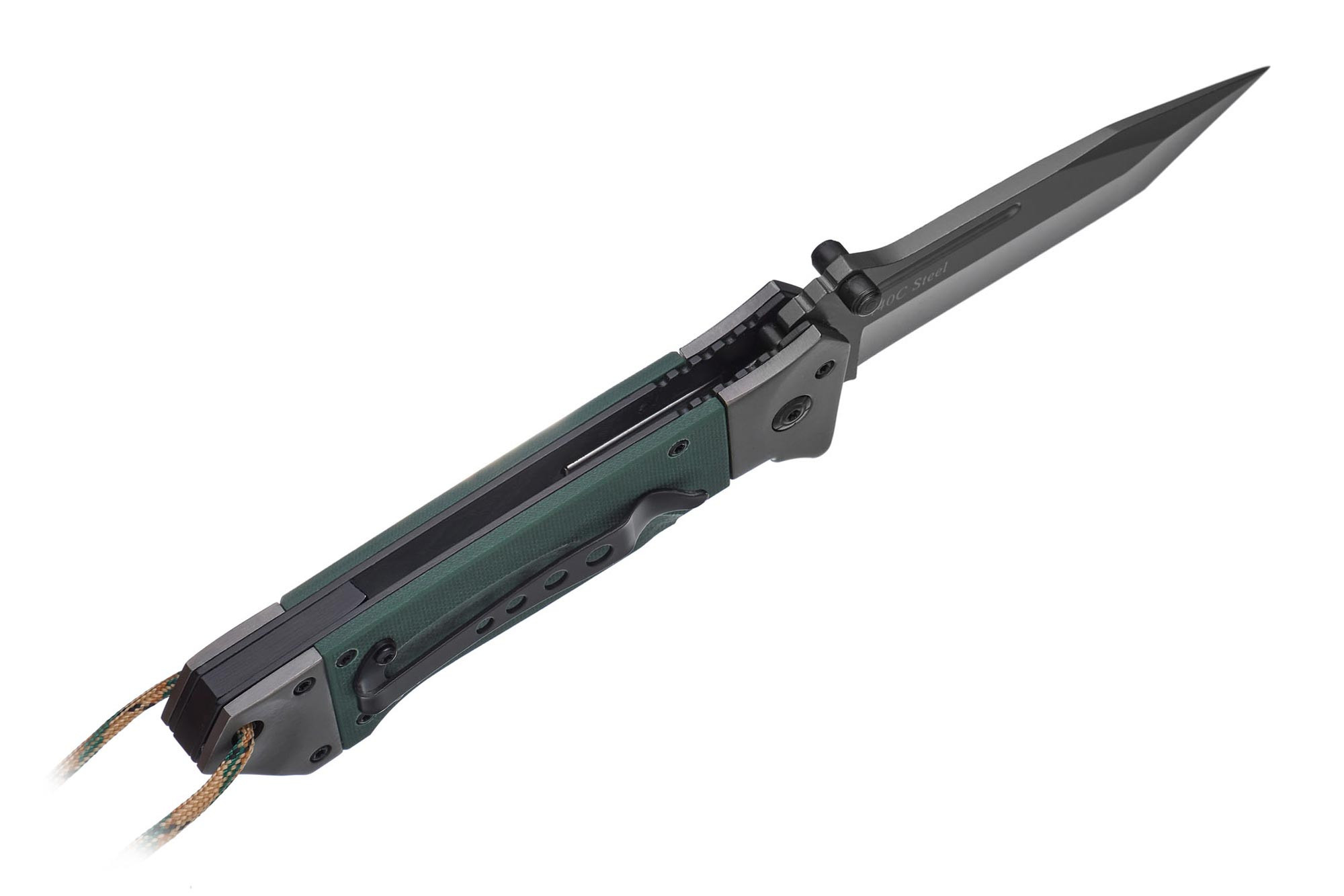 - клинок із стійкої до корозії, невибагливої нержавіючої сталі 440 С (покриття Ti-Ni(Titanium Nitride) надає йому додаткової краси та стійкості до дрібних пошкоджень типу подряпин);