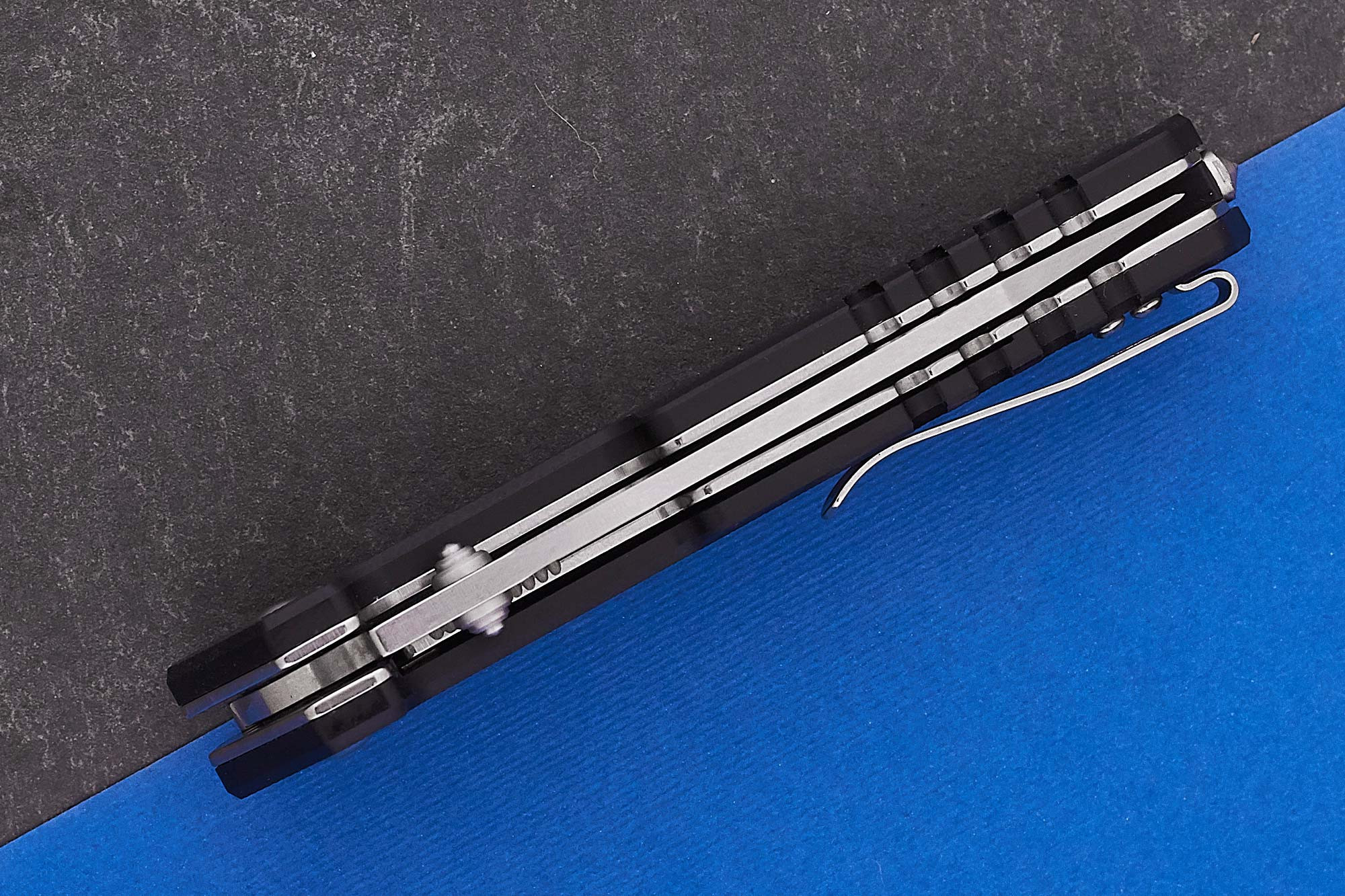 В осевом механизме ножа находятся подшипники, по этой причине нож флипует легко и лестко. Как альтернативный способ раскрытия с обоих сторон клинка имёются шпеньки.