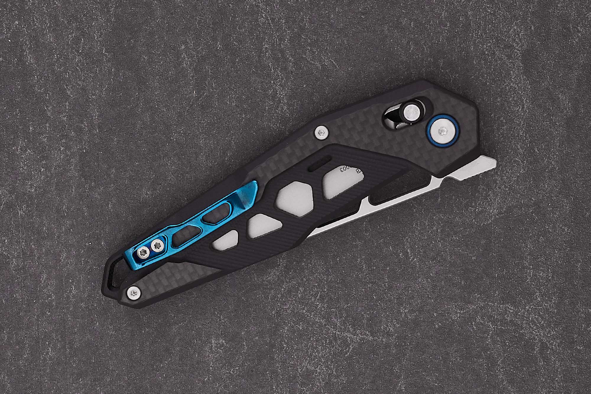Нож действительно воздушный, ажурный, но при этом хай тековый, напоминающий что-то из аэрокосмической отрасли. То есть, с современным дизайном тут тоже всё очень хорошо. Такой нож не стыдно вынуть из кармана в приличном обществе.
