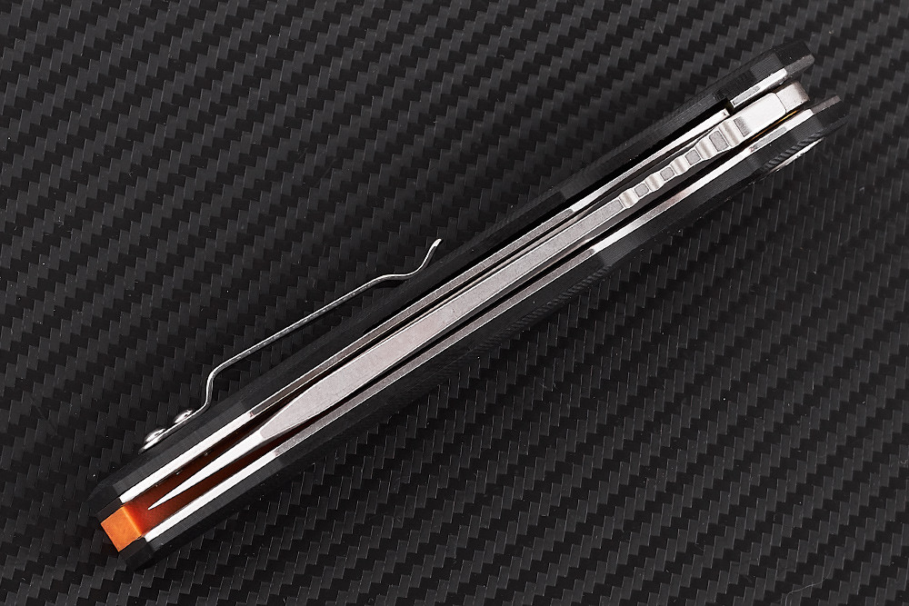 Флип у ножа очень лёгкий, сопровождающийся характерным сочным щелчком. Стильно оформленный осевой механизм содержит подшипники и фактически безотказен. Тип фиксирующего клинок замка - Liner Lock. Пружина стабильно и надёжно становится на своё место. Благодаря выборке под палец и снятым фаскам снимать клинок с фиксации так же легко и комфортно.