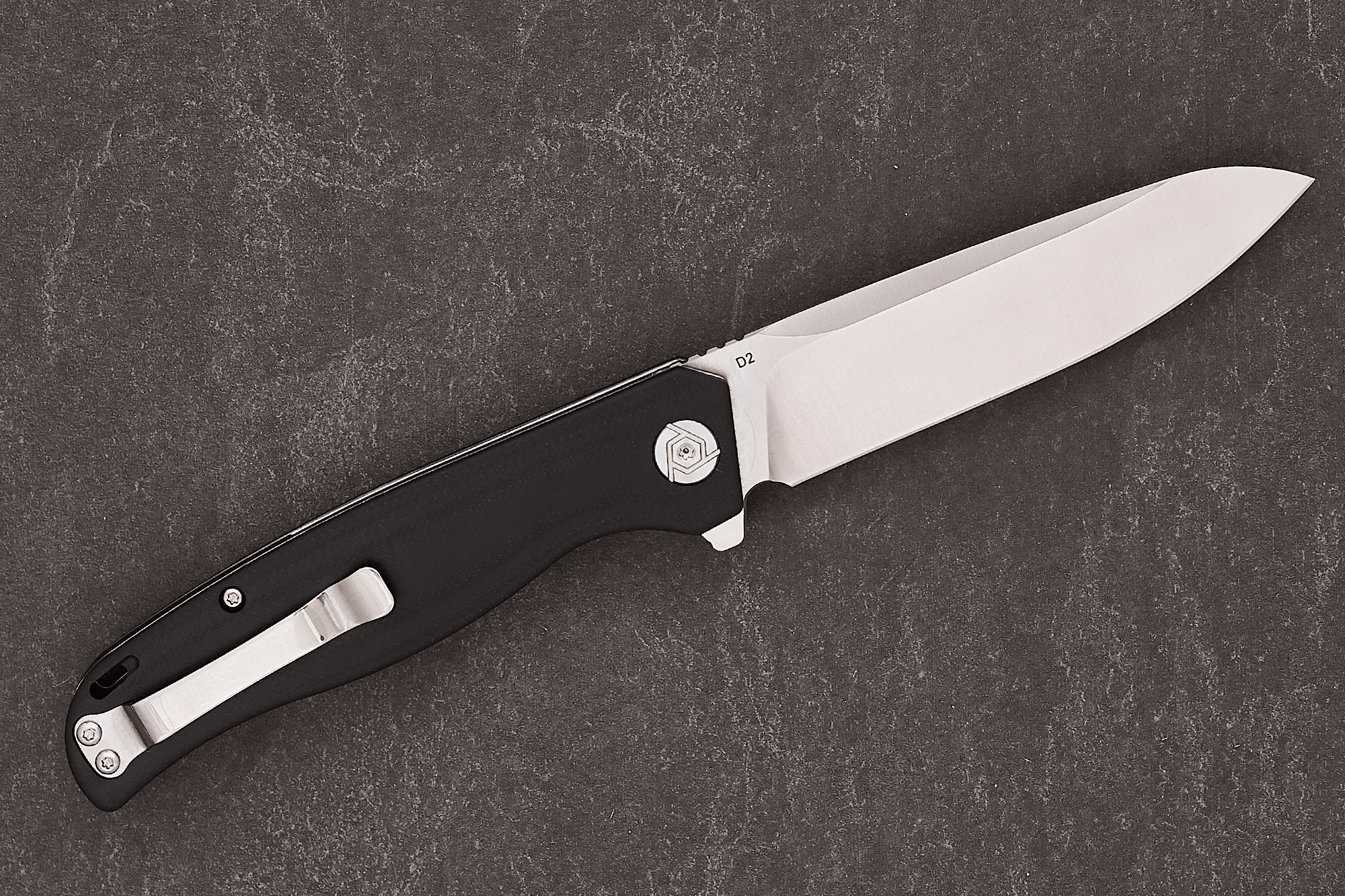 Клинок изготовлен из полунержавеющей стали D2, обеспечивающей ему солидную прочность (к тому же толщина в обухе - 3,5 мм) и отличное удержание остроты режущей кромки. Интересна и форма клинка. Это своеобразный гибрид ворнклиффа и дроп пойнта. Что обещает владельцу лучшее от обоих геометрий, то есть, способность отлично резать и вполне неплохо при этом колоть. Острие клинка при этом достаточно прочное (в прочем, просим вас, что называется, не проявлять фанатизма).
