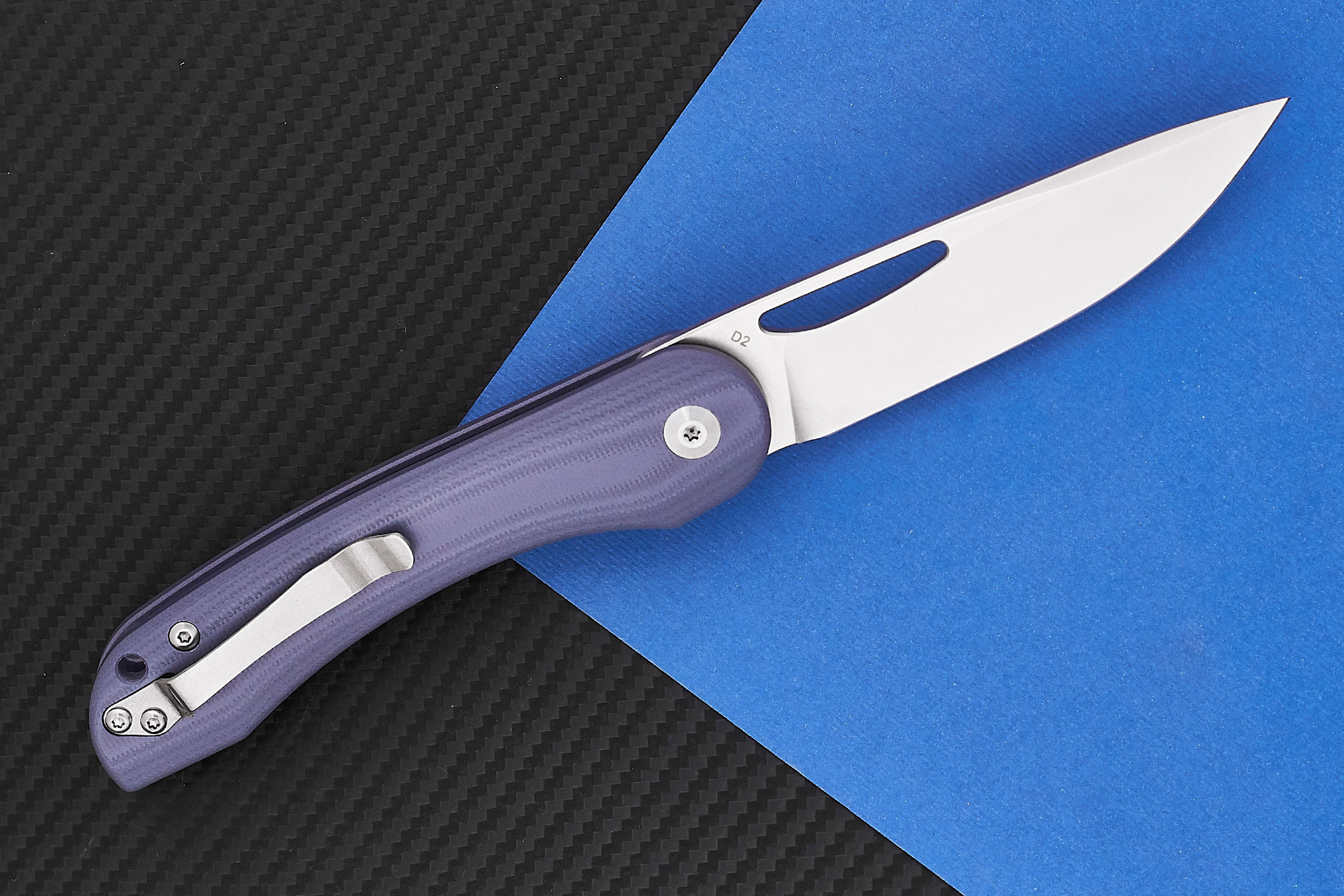 Клинок - аккуратный drop point с высокими спусками выполнен из качественной нержавеющей стали D2. Сведение тонкое, симметричное, типичное для отличных резаков под маркой CH.