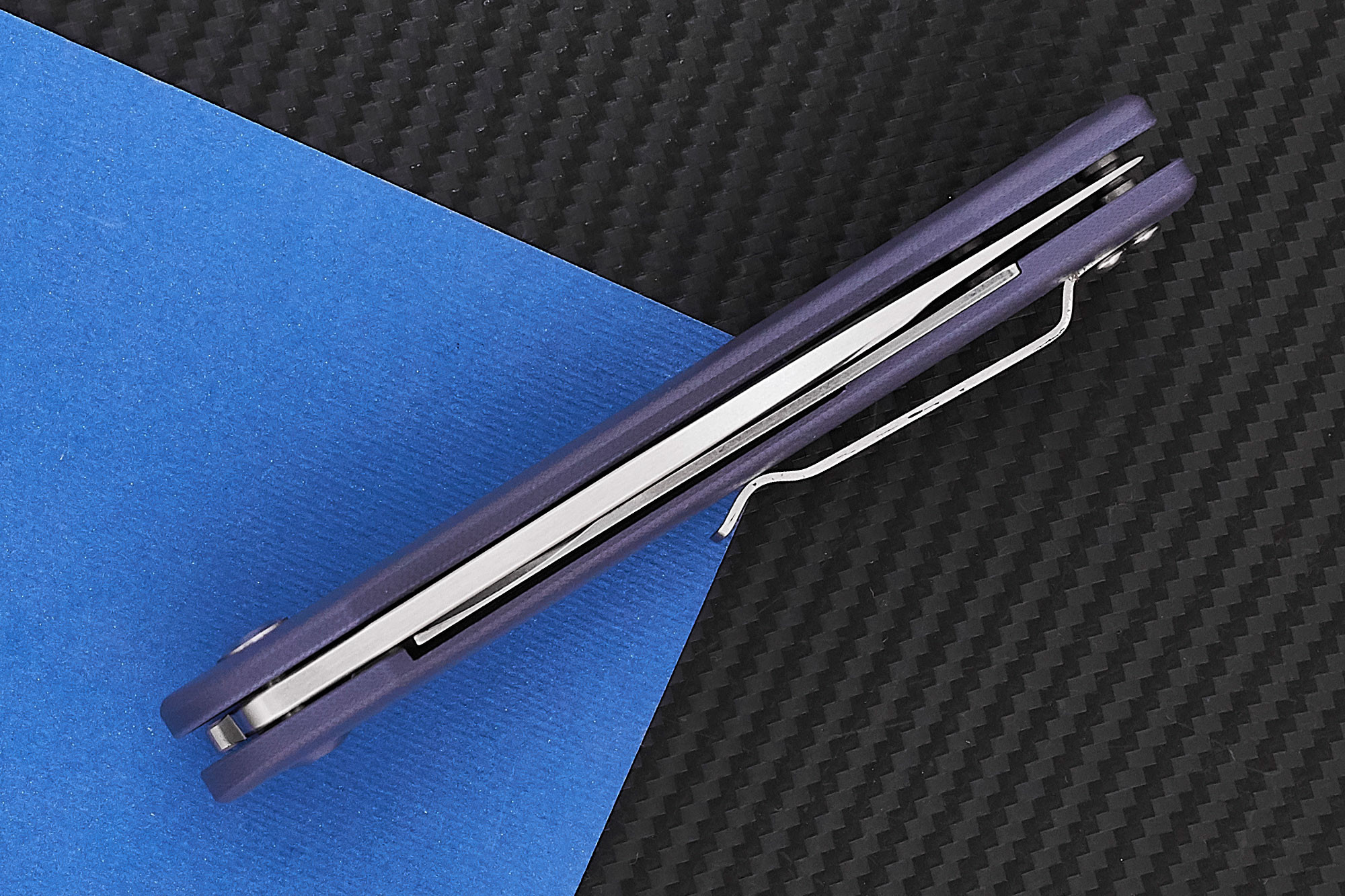 Раскрывается клинок легко, одной рукой, зацепом за развитое эргономичное подпальцевое отверстие. Никаких торчащих шпеньков или плавников нет. Опять-таки сделано это, чтобы нож не цеплялся за ваш карман ничем кроме клипсы. Сама клипса стальная, не переставляемая. Она обеспечивает надёжную посадку ножа. Что, в принципе, для современных EDC - стандарт.
