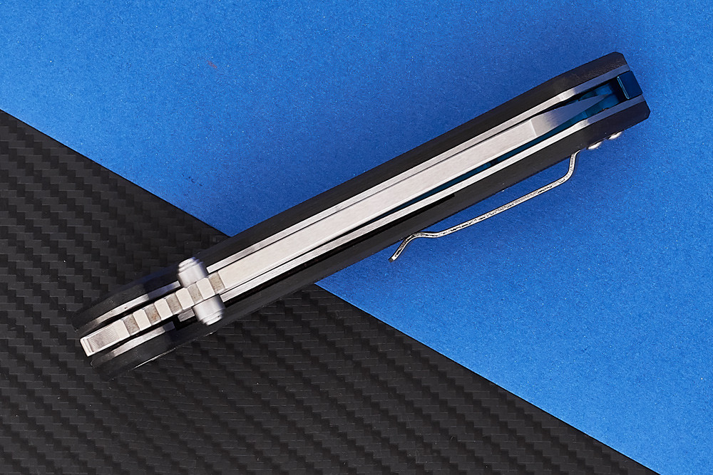 Раскрыть складень можно за шпеньки, либо как фронтальный флиппер - за выступ клинка. При этом щёлкает клювом Тукан легко и чётко (в осевом – керамические подшипники).