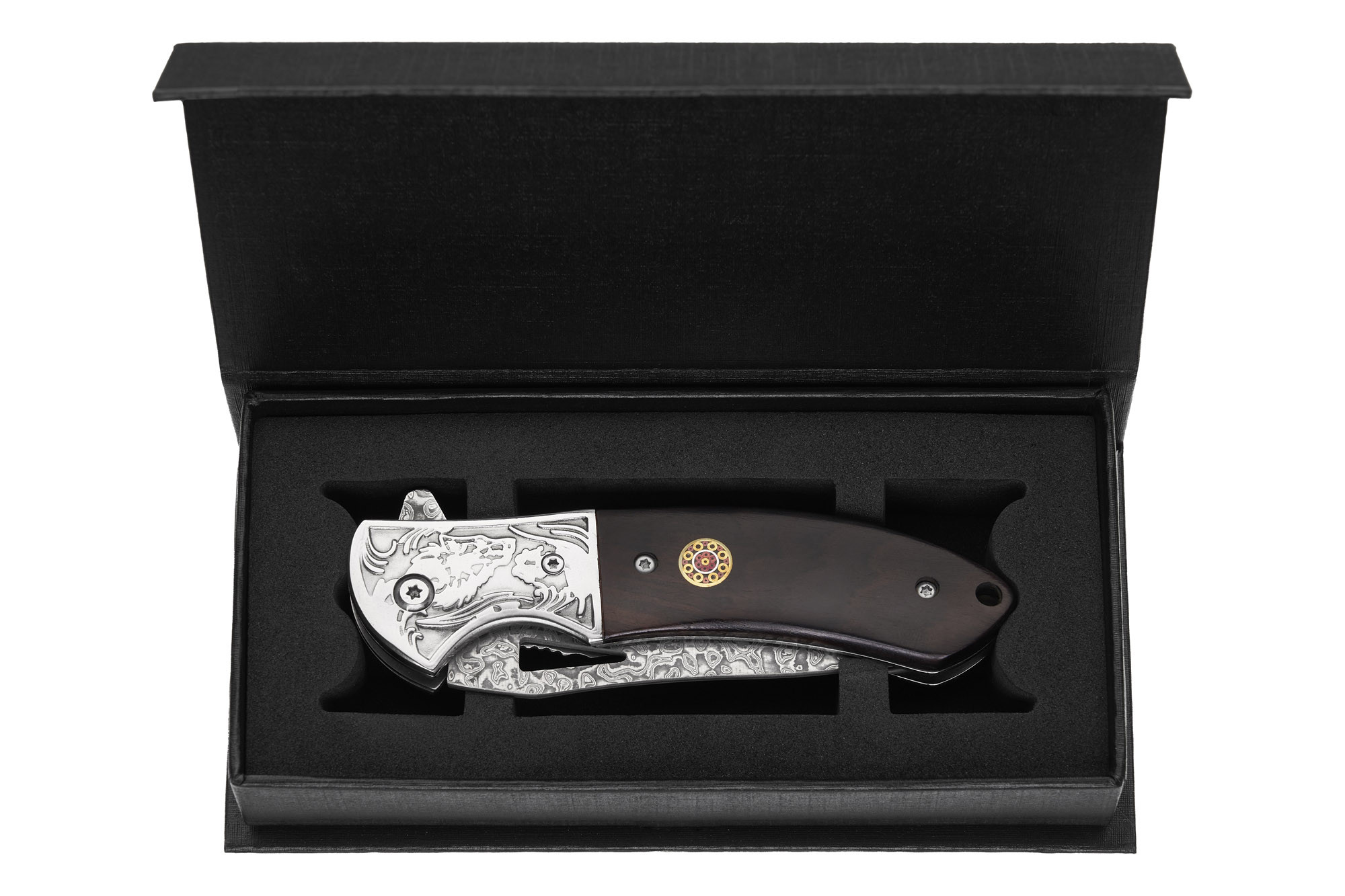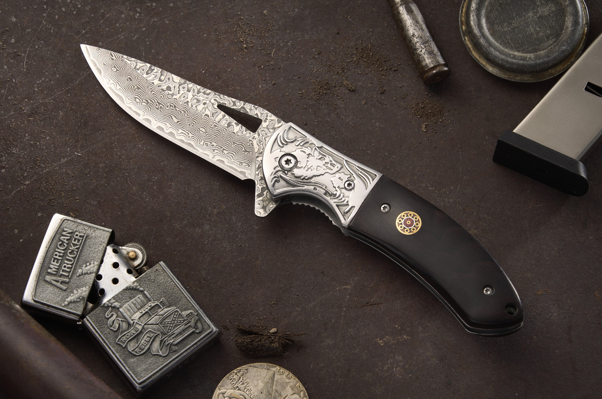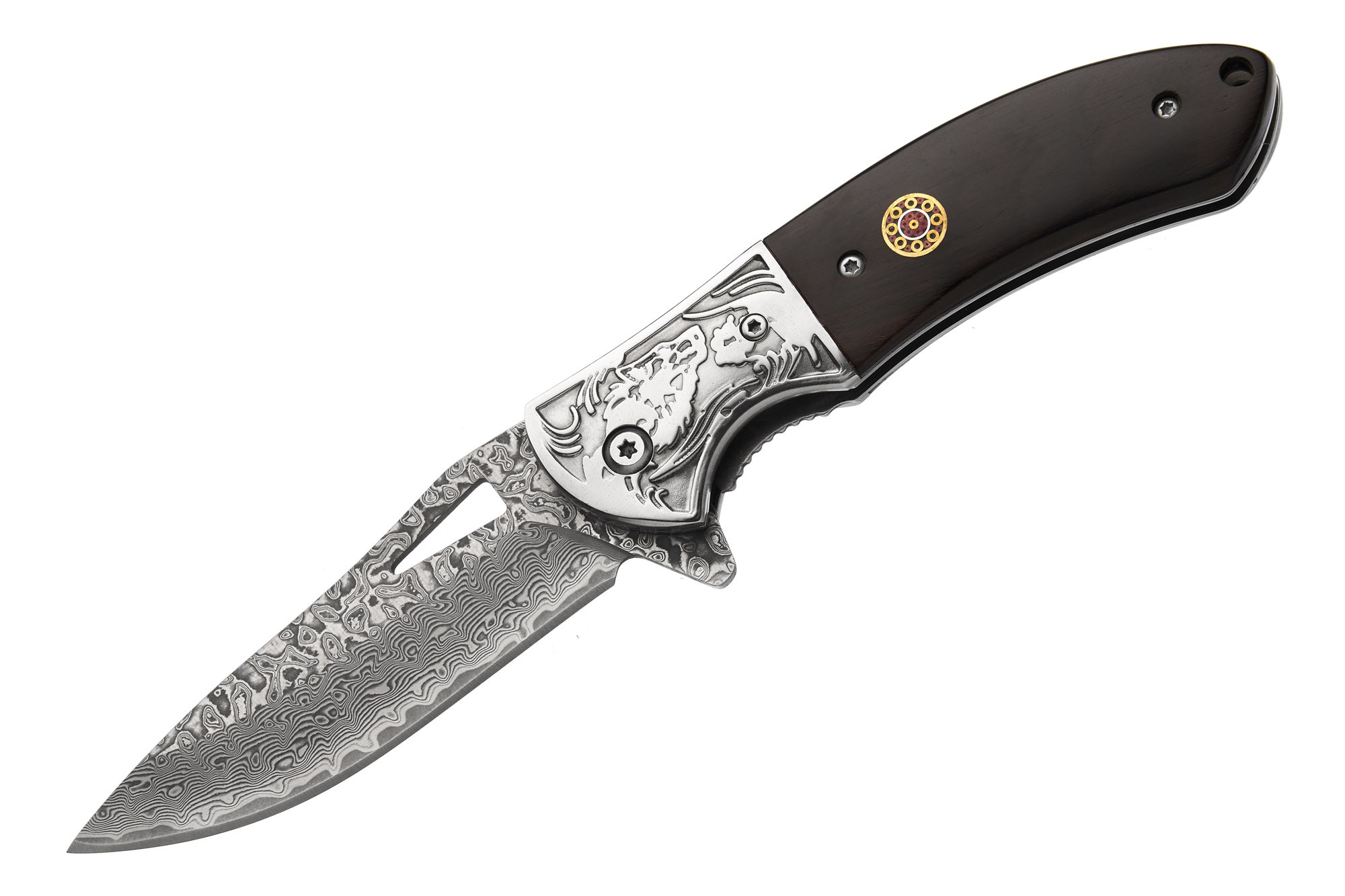 Grand Way представляє елегантний складаний ніж, створений для тих, хто цінує якість, стиль та увагу до деталей. Його клинок виконаний із справжньої дамаської сталі — міцного багатошарового матеріалу, відомого своєю довговічною гостротою та характерним хвилястим малюнком.