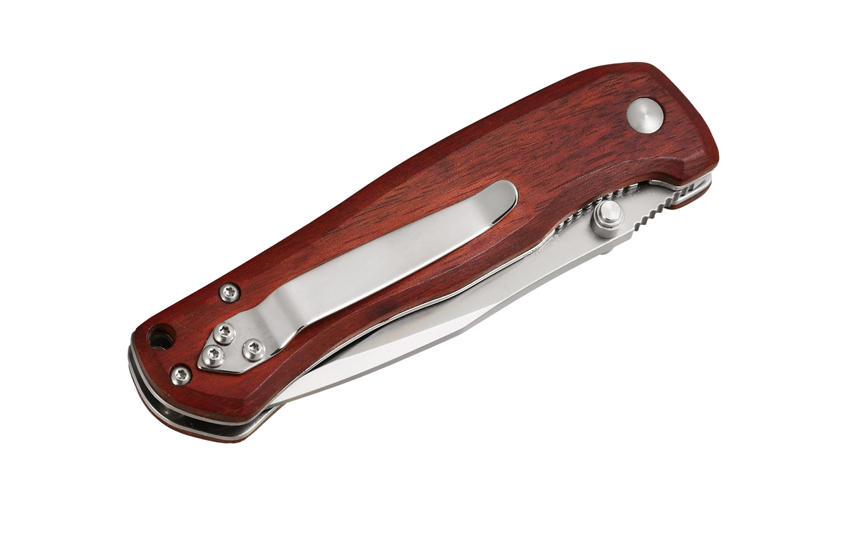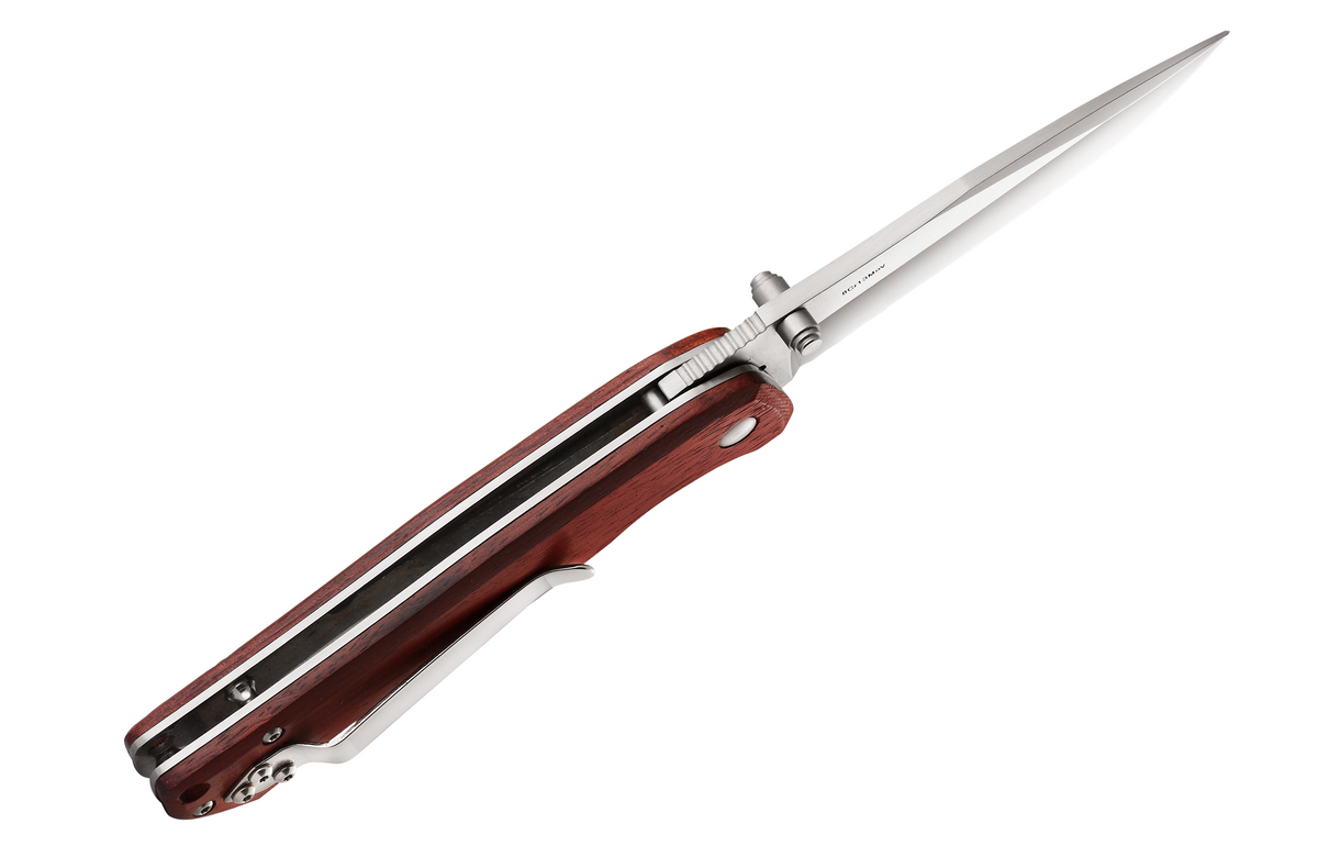 Шпеньки на клинку забезпечують відкриття ножа однією рукою. Наявність "тіп ап" кліпси забезпечує зручне постійне носіння ножа із собою.