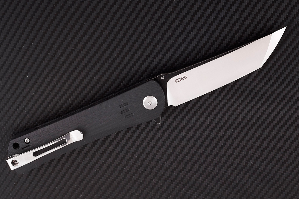 KENDO – складной нож, сочетающий в себе компактность складника EDC-шника с популярным клинком формы «американский танто». Что и отражено в его названии (кендо – «путь меча», японское учение, философия и вид спорта одновременно). Этот компактный и аккуратный складник с замком системы liner lock, имеет прямую чёрную рукоять, своим видом действительно вызывающую воспоминания о японских мечах. Чёрные накладки из полимера G10 шероховаты на ощупь и совершенно не скользят в руке. Самое примечательное, что лайнеры выполнены заподлицо, как бы утоплены в накладки. Смотрится такое решение реально классно.