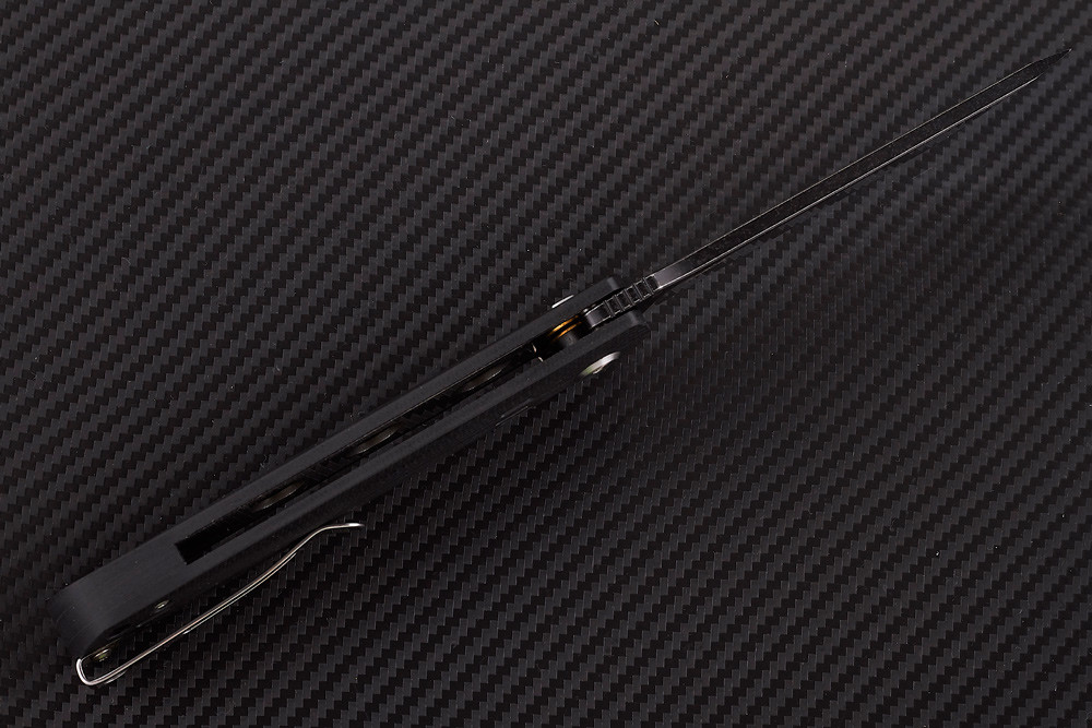 На рукояти имеется стальная клипса и отверстие под темляк.Так как этот нож – флиппер, он имеет аккуратный плавник, работающий ещё и удобным упором под пальцы. Сам флип у ножа совершается легко и приятно. Чувствуется, что подшипники в осевом отрабатывают на все сто.Клинок, длинной 95 мм, является самым настоящим американским танто без всяких оговорок.