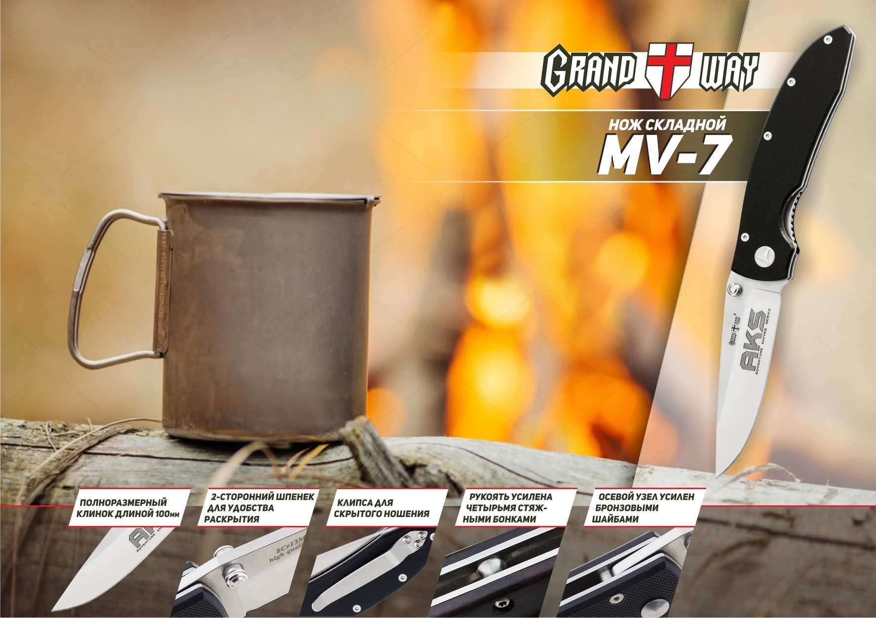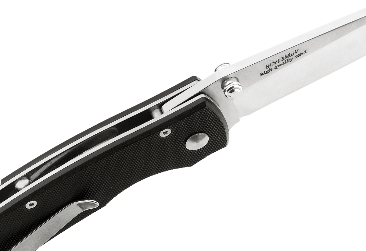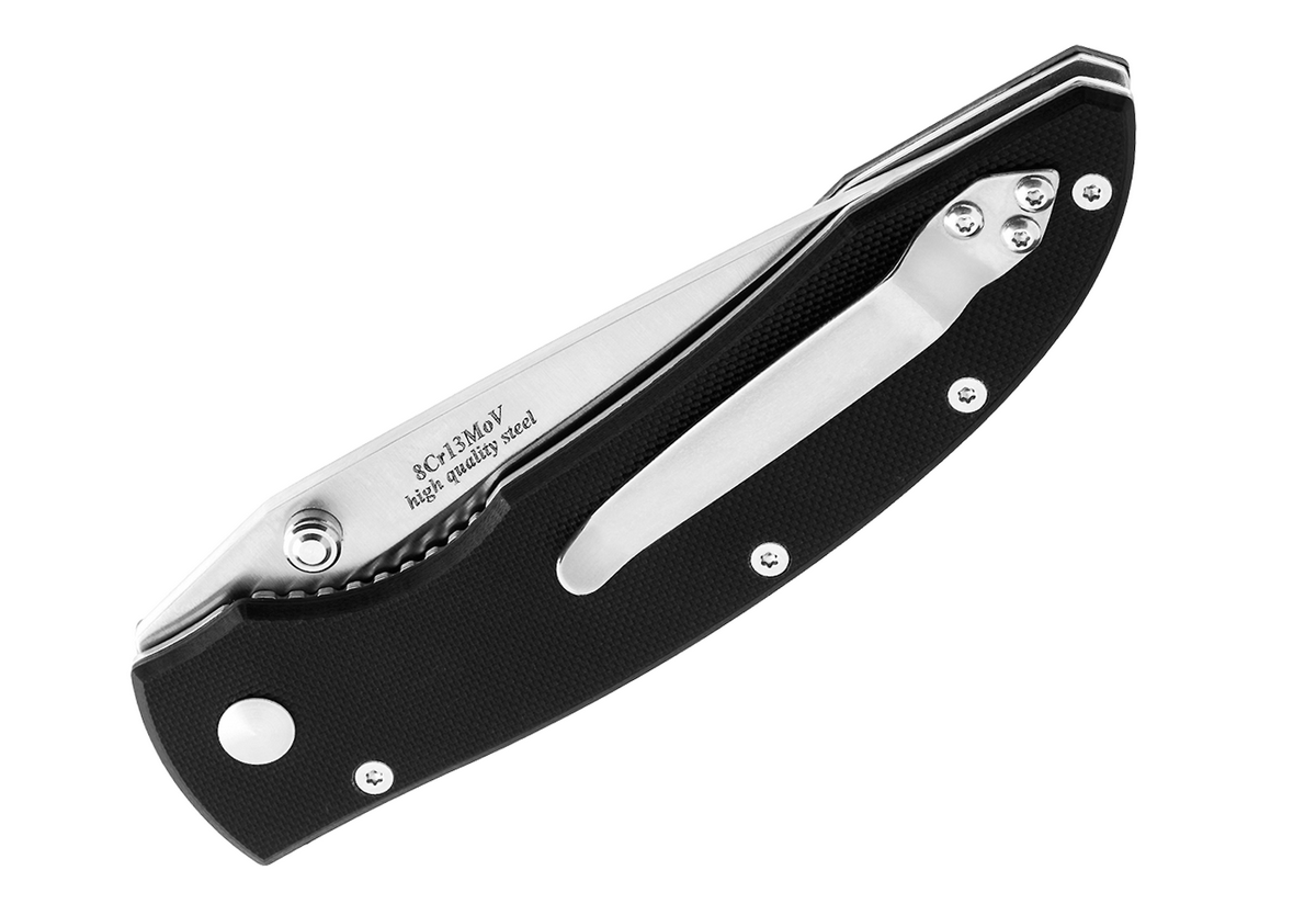 Современный складной нож с клинком из высококачественной нержавеющей стали, дополнительно легированной молибденом и ванадием. Сбалансированный состав стали марки 8Cr13MoV обеспечивает длительную работу без заточки, хорошую стойкость к ржавчине и высокую прочность. Ножи серии MV – это первые ножи, выпущенные по собственным проектам компании Grandway. Ножи этой серии хорошо зарекомендовали себя и пользуются большой популярностью.