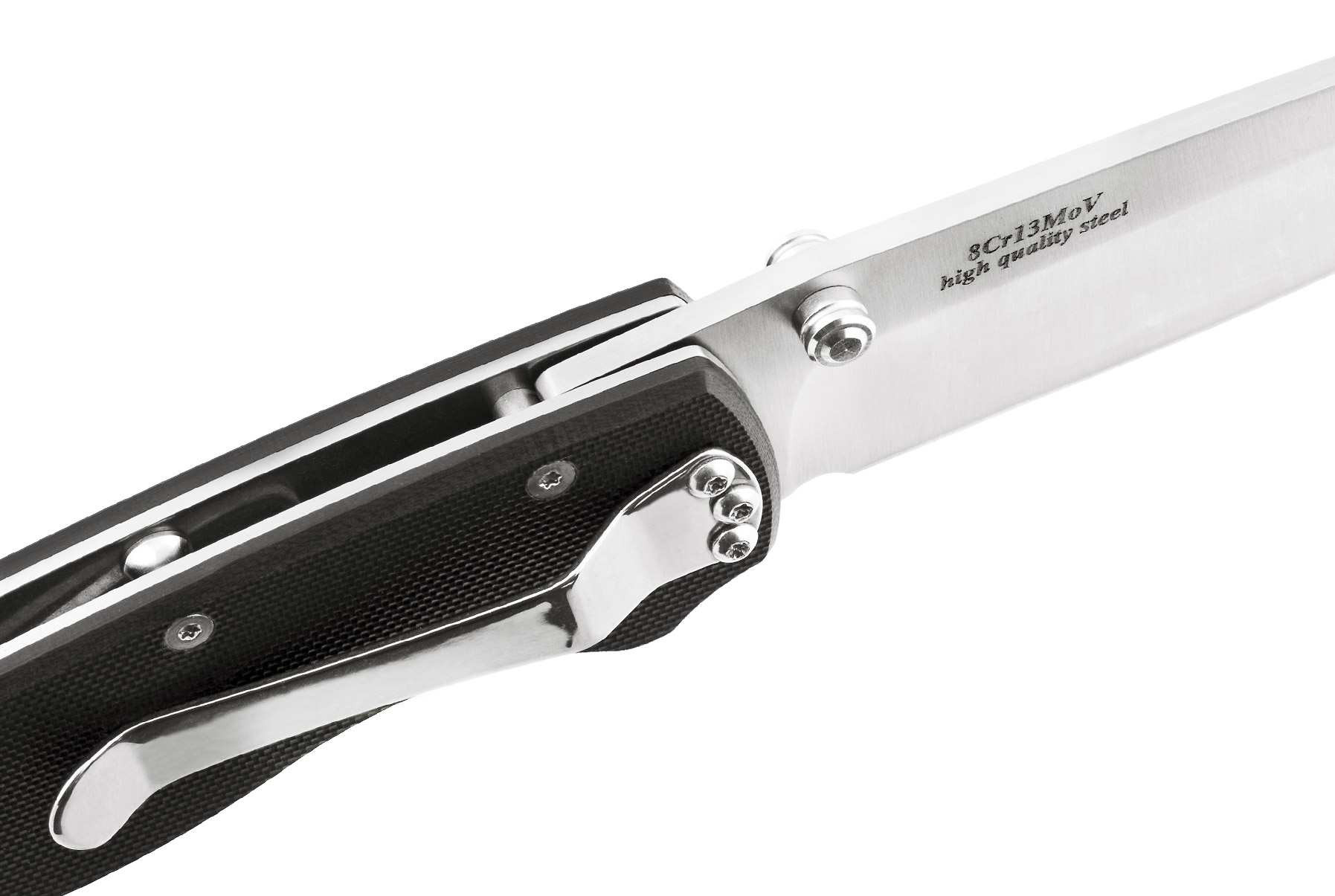 Современный складной нож с клинком из высококачественной нержавеющей стали, дополнительно легированной молибденом и ванадием. Сбалансированный состав стали марки 8Cr13MoV обеспечивает длительную работу без заточки, хорошую стойкость к ржавчине и высокую прочность. Ножи серии MV – это первые ножи, выпущенные по собственным проектам компании Grandway. Ножи этой серии хорошо зарекомендовали себя и пользуются большой популярностью.
