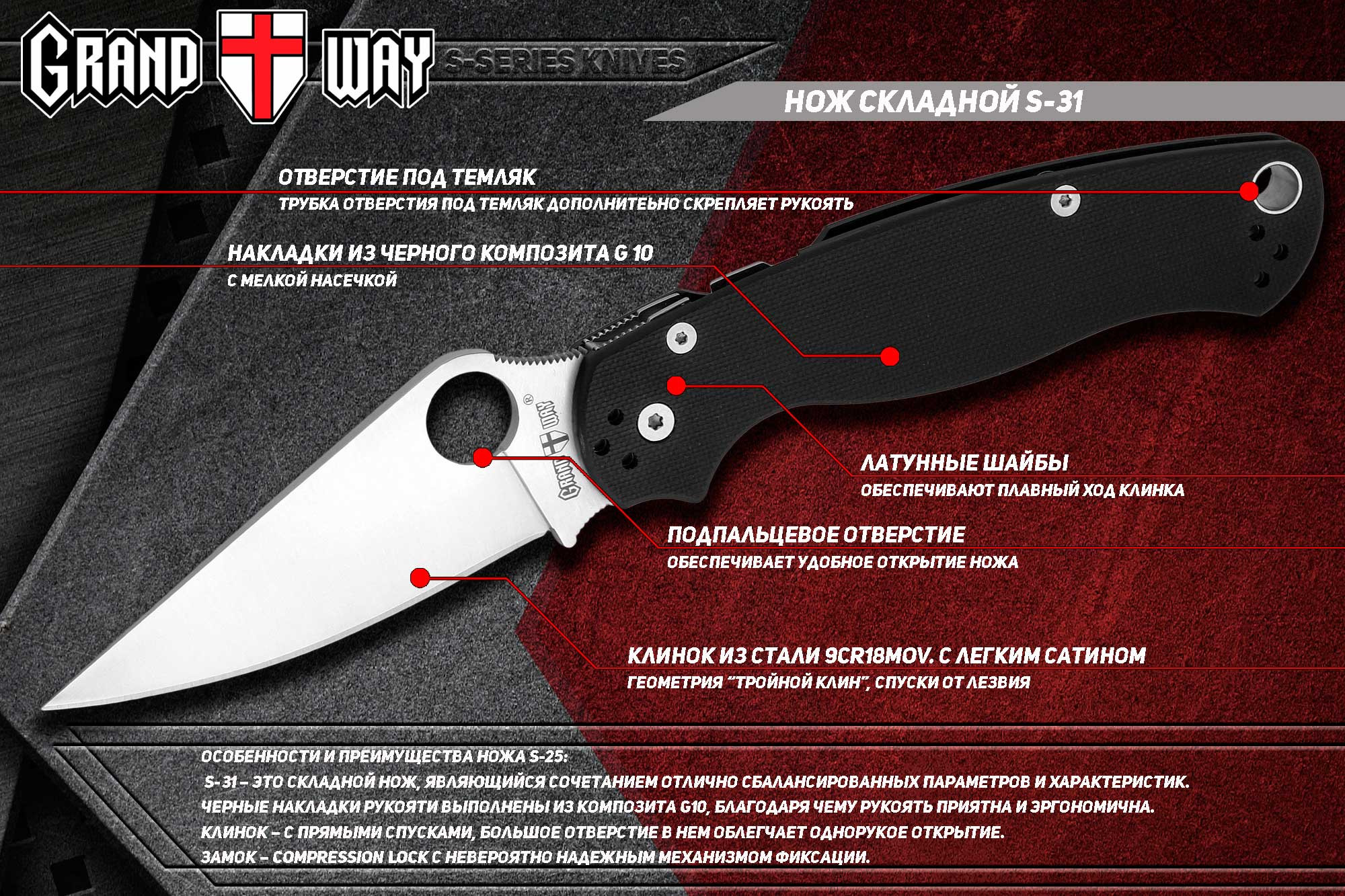 | Материал рукоятки: | G10 |