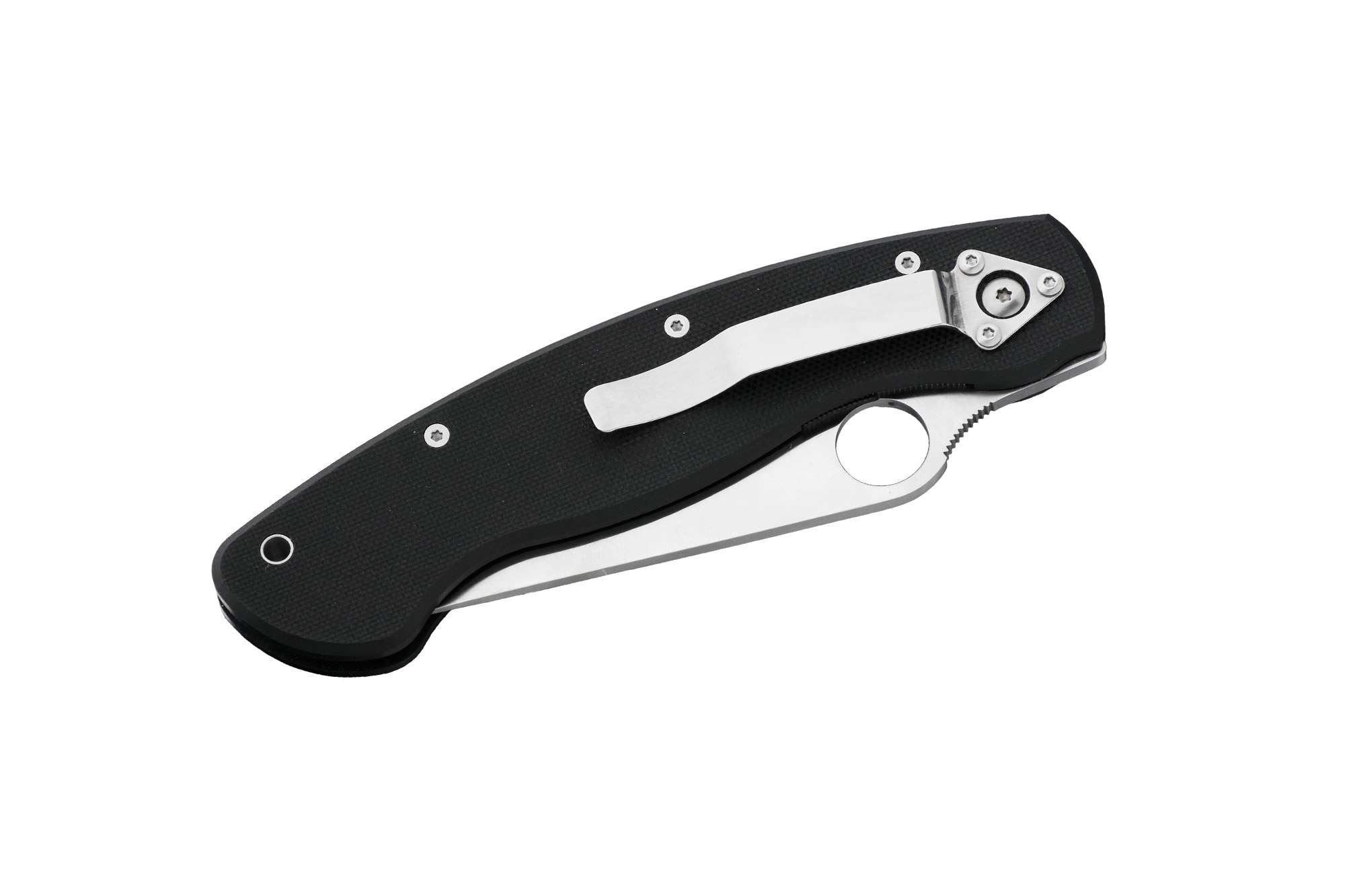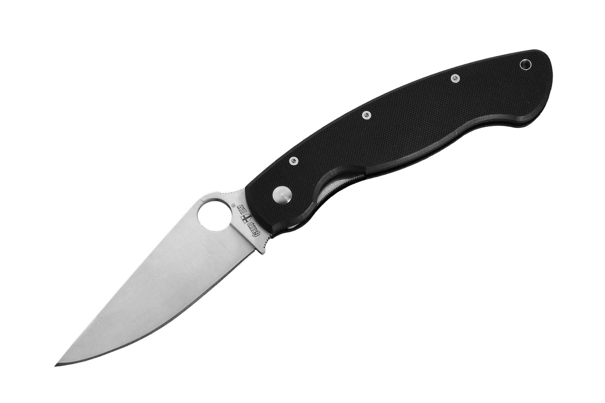 Обработка поверхности клинка – поперечное сатинирование. Непривычное крупное отверстие в клинке обеспечивает весьма удобное однорукое открытие ножа.
