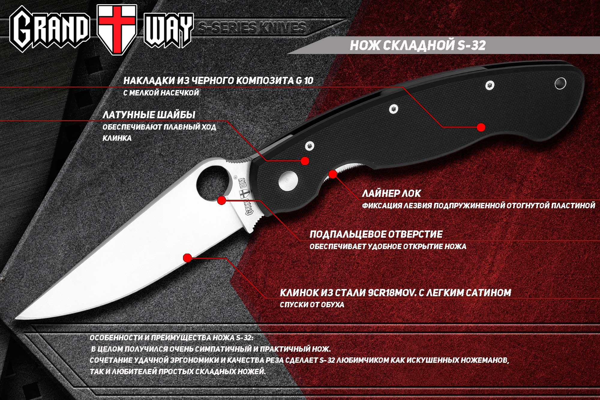 В целом получился очень симпатичный и практичный нож. Сочетание удачной эргономики и качества реза сделает S-32 любимчиком как искушенных ножеманов, так и любителей простых складных ножей.