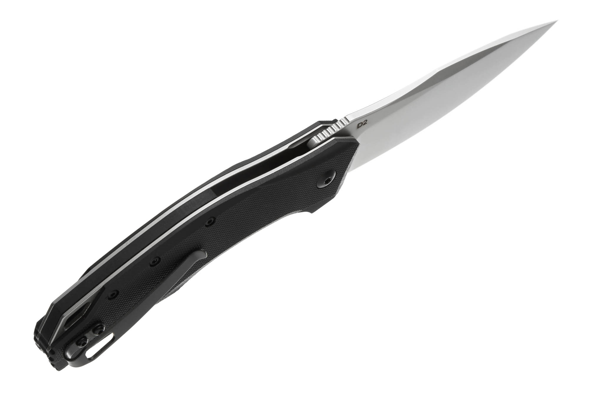 Клинок довжиною 86 мм має прямі спуски від обуха – ідеальна геометрія для кишенькового різака. При цьому профіль клинка – щось середнє між drop point та spear point, що гарантує вам, що і колоти цим ножем буде дуже зручно.