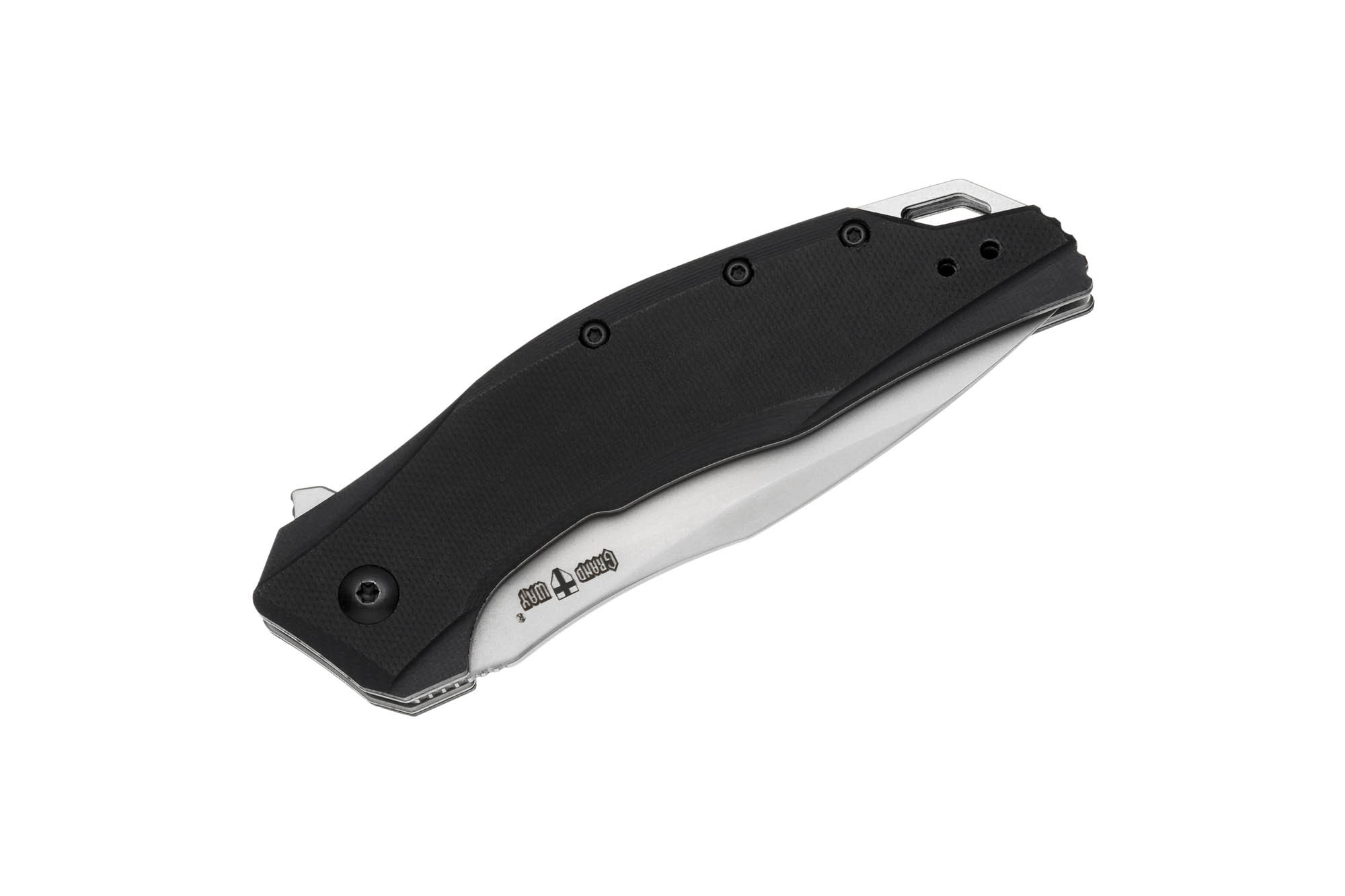 Руків’я відмінно лягає у долоню. Накладки з чорного G10 мають текстуру, що підвищує комфорт та надійність утримання ножа під час роботи. Міцність та надійність самого композиту G10 давно і добре відома і не потребує додаткових рекомендацій. Наявність якісно виконаних накладок з цього матеріалу в сучасному ножі – скоріше правило гарного тону, ніж щось виняткове.