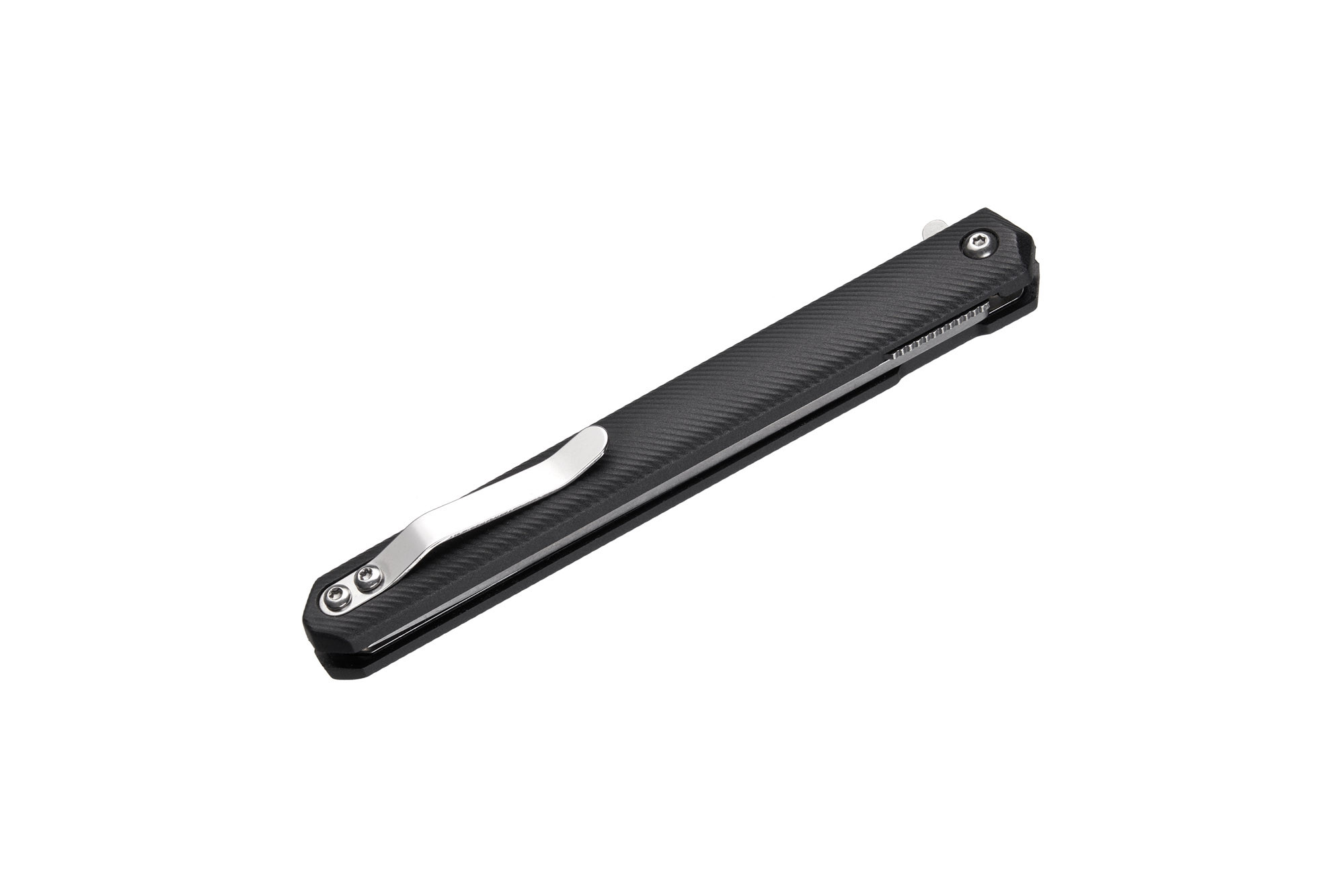 Клинок ножа вузький і для такого мініатюрного складня відносно довгий (91 мм), майже близький до стилетообразного. Вістря типу американський танто надає лезу цього ножа додаткової міцності та гарних колючих якостей.