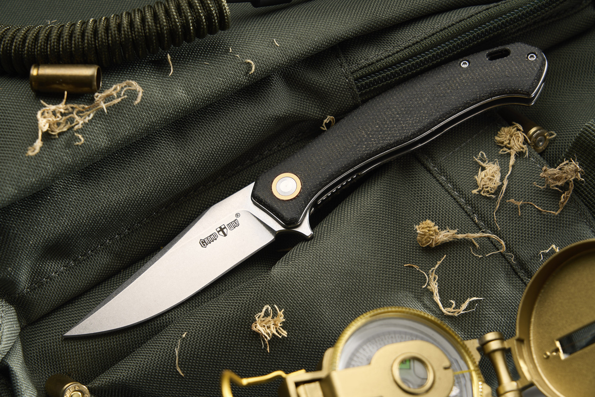Ніж SG 147 Black – дуже легкий (89 г !) складаний EDC ніж, який відрізняється дуже харизматичним, примітним дизайном. Клинок типу clip point (так звана “щучка”) та витончений вигин руків’я з стильними накладками з чорної мікарти роблять SG 147 Black схожим чи то на маленьку наваху, чи то на складаний мисливський ніж. Але з однією важливою поправкою – все це зроблено у дуже сучасному, відповідному до самих актуальных уявлень про ножовий дизайн, стилі.