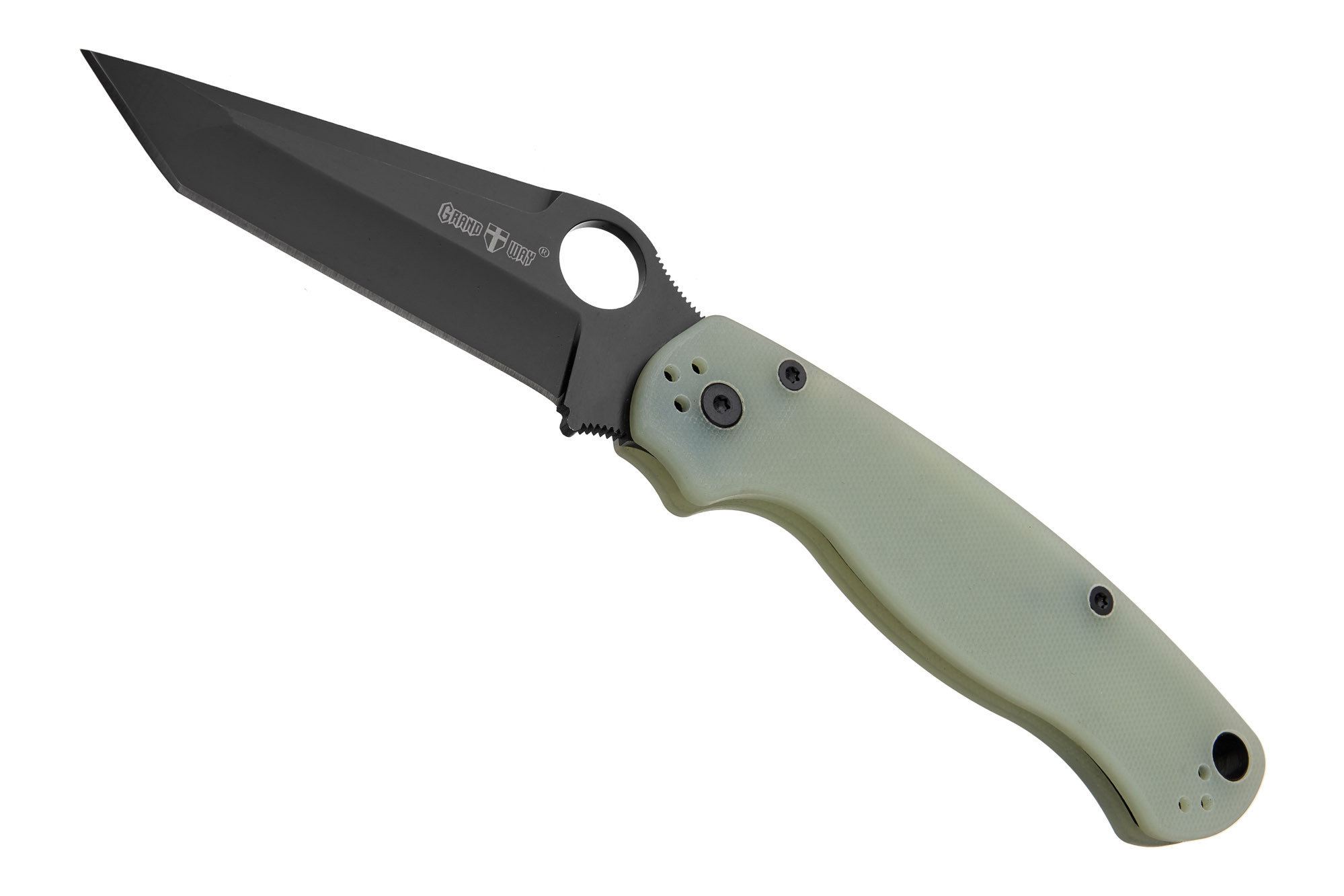 Grand Way пропонує ніж у декількох варіантах. З руків’ями з карбону та G10, та з різним фінішем клинка. Модель SG 168 ivory black має руків’я з G10 (колір – ivory) та клинок із покриттям Black Oxide.