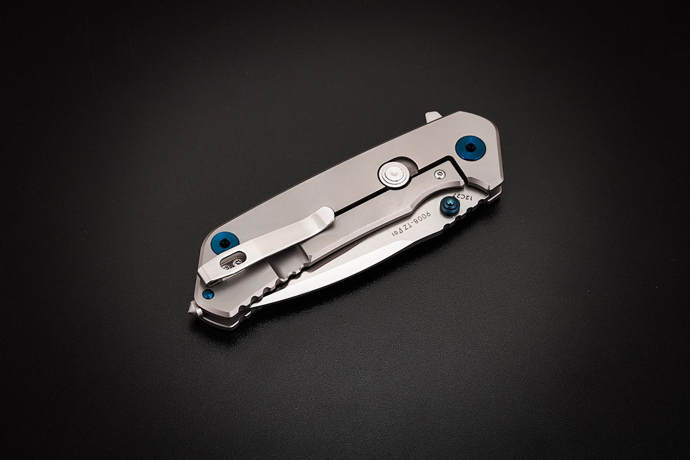 Рукоять этого складника-флиппера с замком frame lock изготавливается из титанового сплава. Этот прочный, корозионно- и износостойкий материал обеспечивает исключительную лёгкость и долговечность всей конструкции.