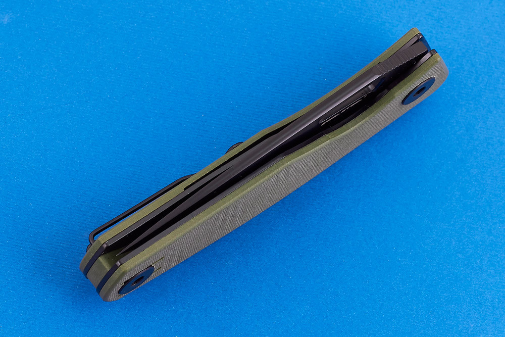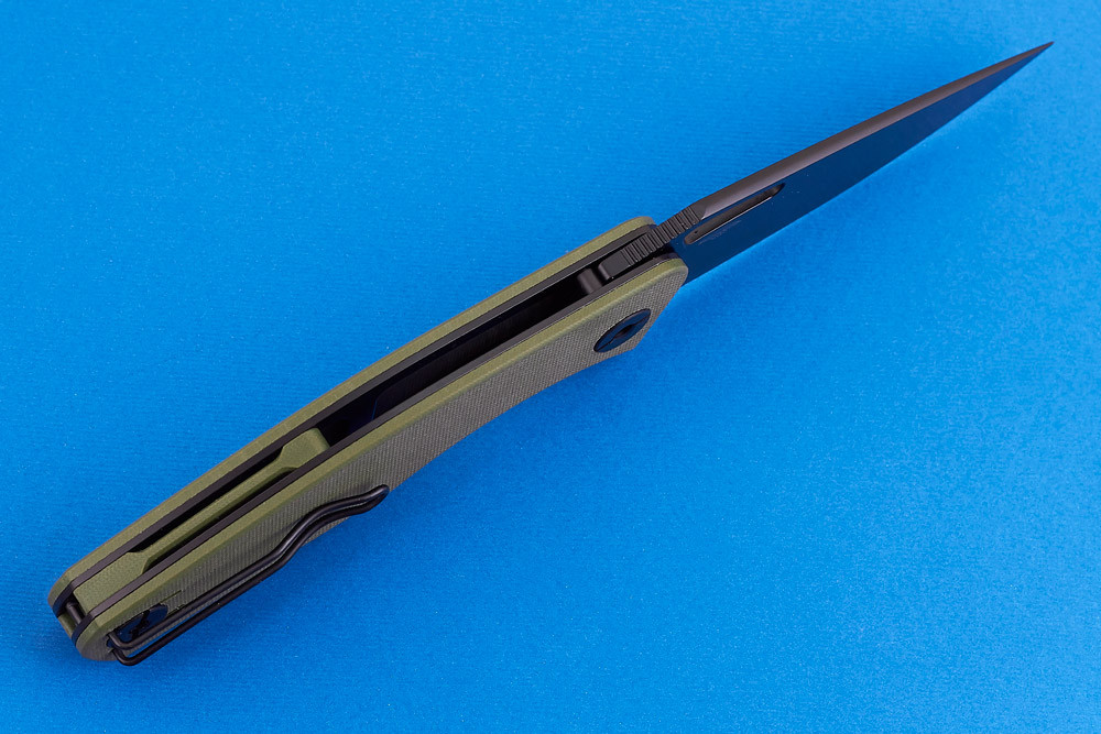 Terra прекрасно подойдёт любителям всего тактикульного. Черный небликующий клинок с хищным клювом острия, зелёная, маскировочных оттенков, рукоять, утилитарная проволочная клипса – стилизация под нож разведчика выполнена на высокую оценку.