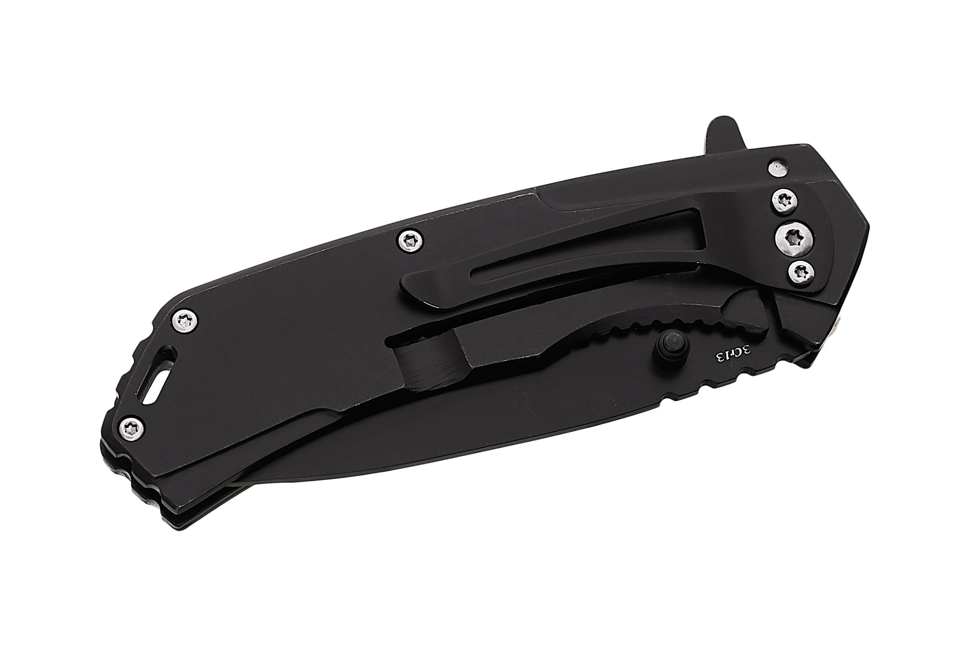 - На рукояти находится удобная клипса, позволяющая надёжно закрепить нож на кармане.