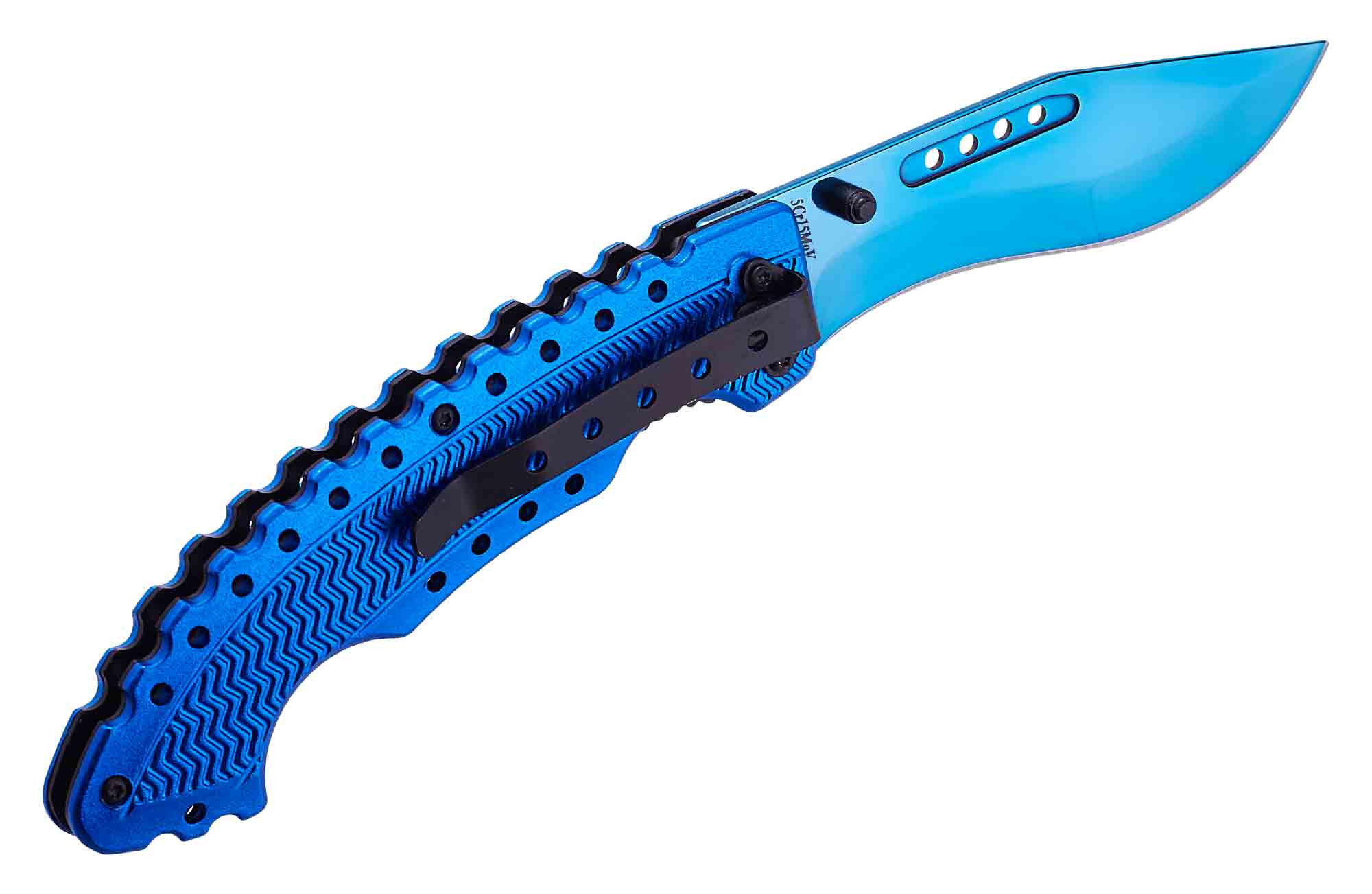 Складной нож WK 0205 – это интересная, сразу запоминающаяся модель ножа. Благодаря яркой расцветке его анодирования и экзотичной формы клинка, с отсылкой к экзотическому кукри. Изготовлен его клинок он из нержавеющей стали 5Cr15MoV, которая беспроблемно правится и точится, а также обладает великолепными антикоррозийными свойствами.