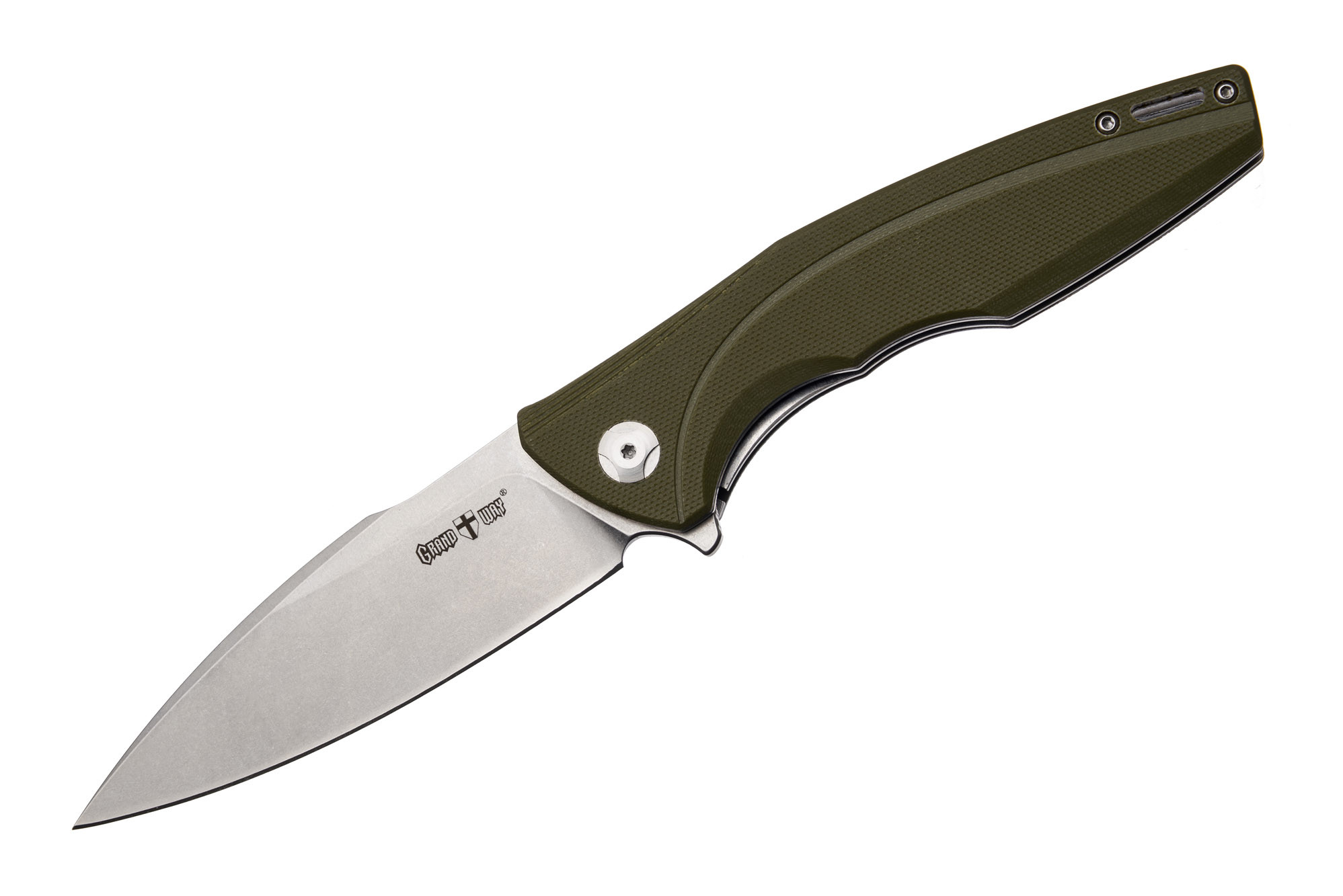 Якщо вам потрібен зручний складаний ніж, який буде колоти не гірше, чим різати, зверніть увагу на Grand Way WK 02187. Його клинок довжиною 96 мм має профіль pear point («списосподібний») та прямі спуски майже від самого обуха. Такая геометрія (а також дуже зручне та безпечне руків'я з накладками з зеленого G10) надають змогу наносити цим ножем точні та ефективні уколи та гарні розрізи.
