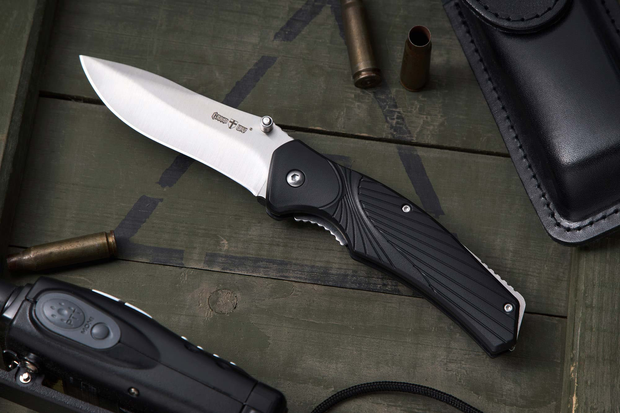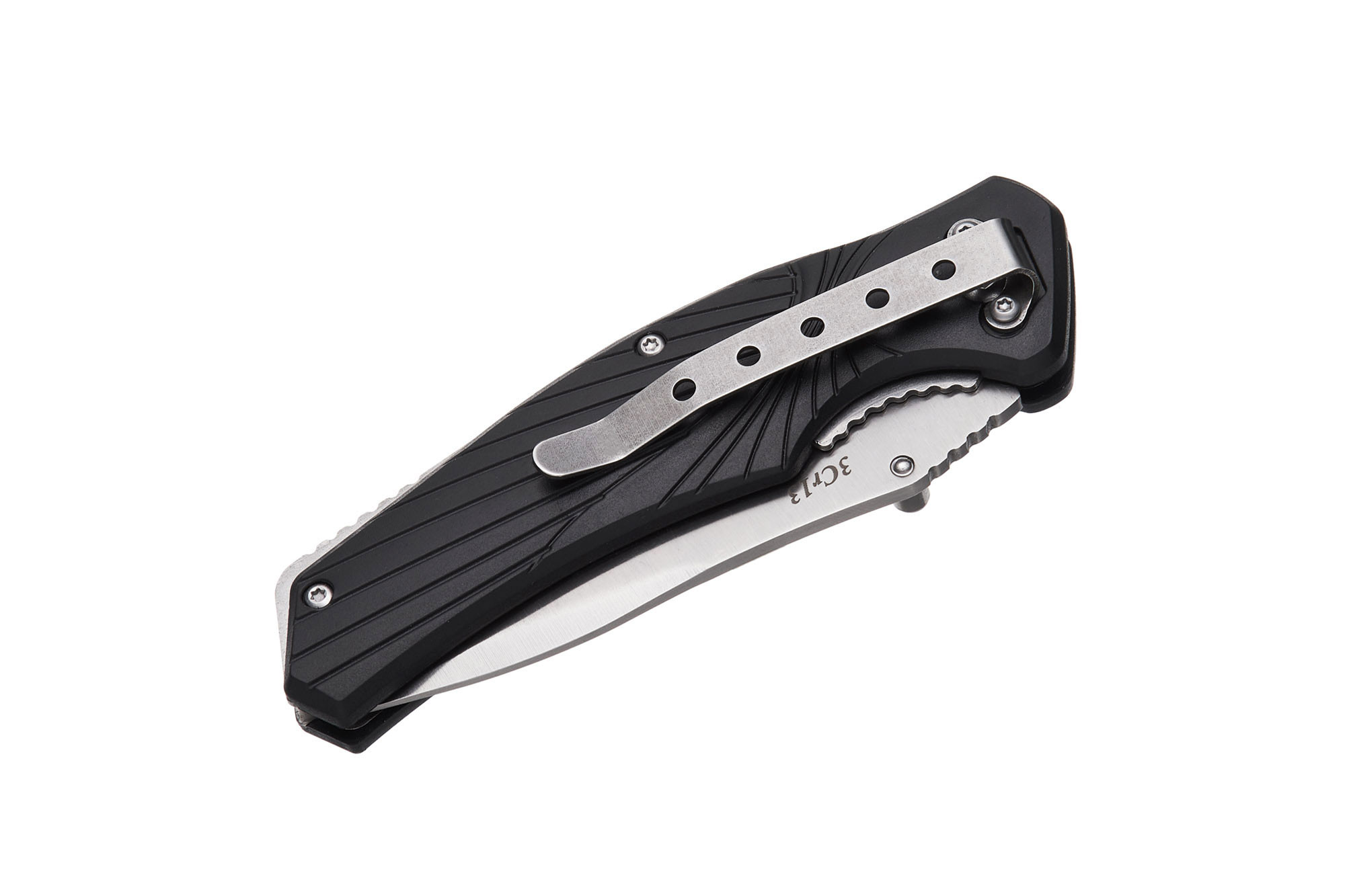 - завдяки шпенькам на клинку, ніж швидко та легко розкривається однією рукою;