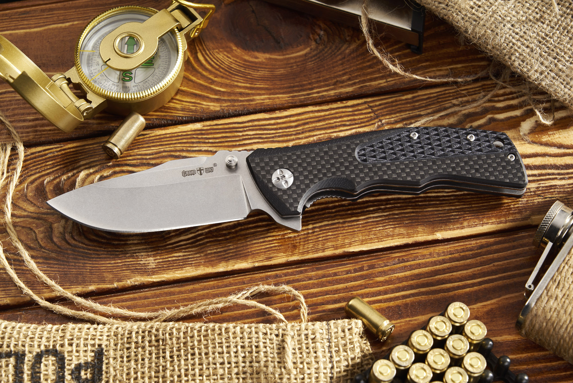 Grand Way WK 06197 (карбон) – досить оригінальний EDC ніж. Його широкий клинок дроп пойнт робить ніж максимально універсальним. Таким ножем можна не тільки упаковку розкрити або мотузку перерізати, але й переробити масу різних справ.