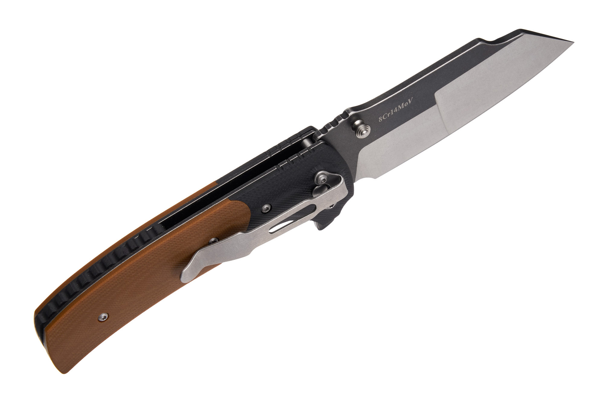 - Клинок із міцної та стійкої нержавіючої сталі 8Cr14MoV довго залишається гострим та не боїться корозії. Сталь 8Cr14Mov відрізняється від 8Cr13MoV великим вмістом хрому, що позитивно впливає її стійкість до корозії. Ця сталь активно застосовується багатьма відомими виробниками ножів.