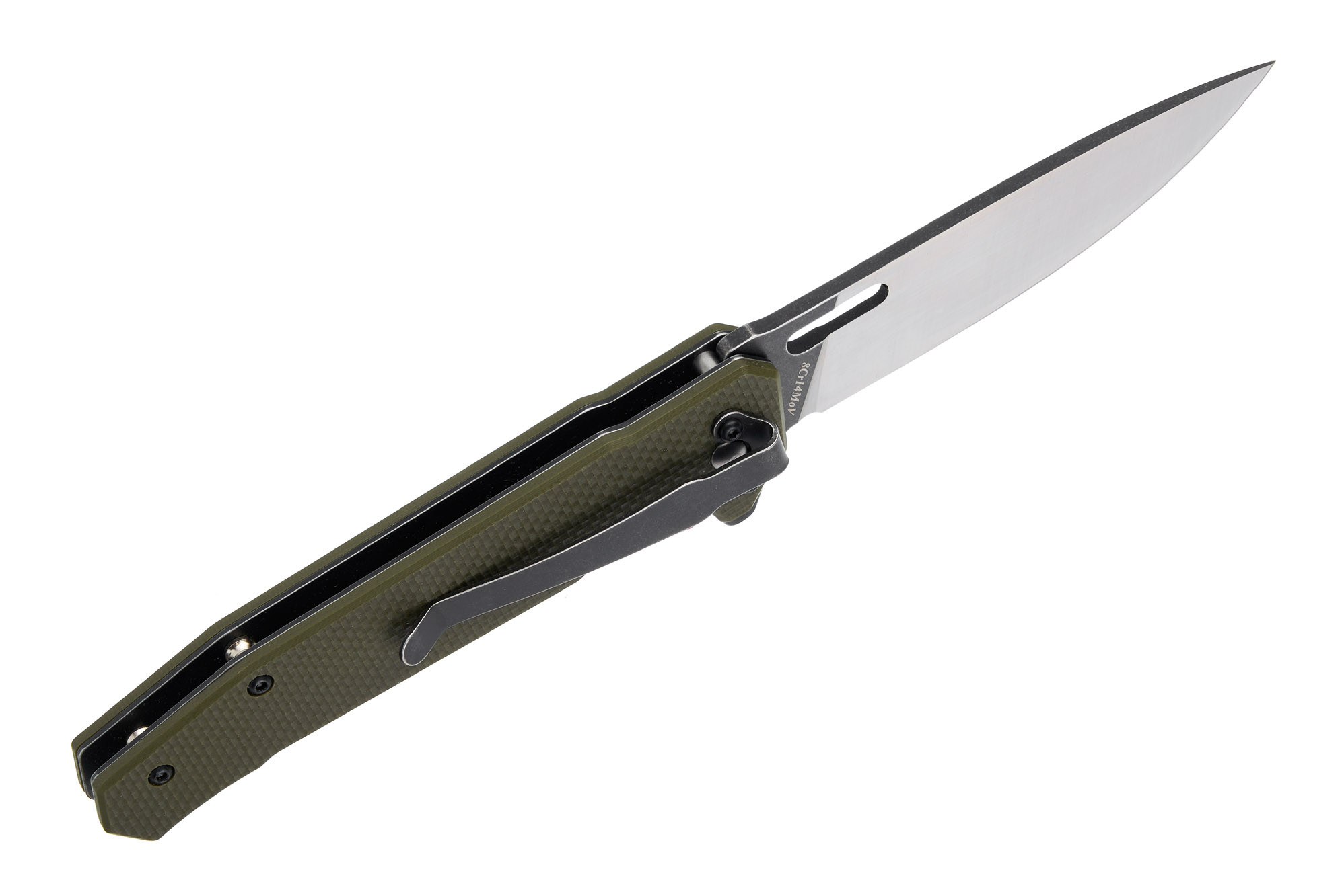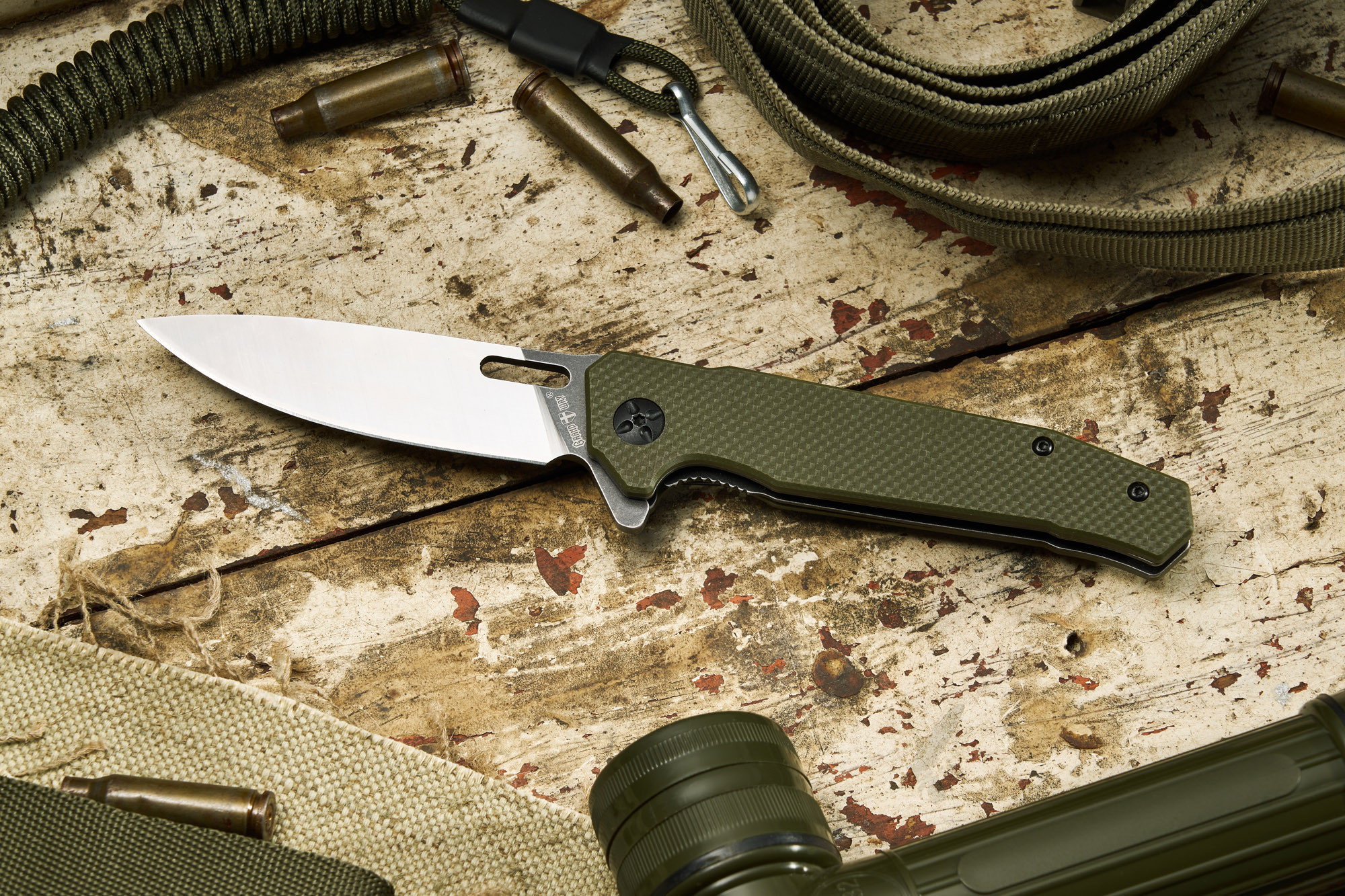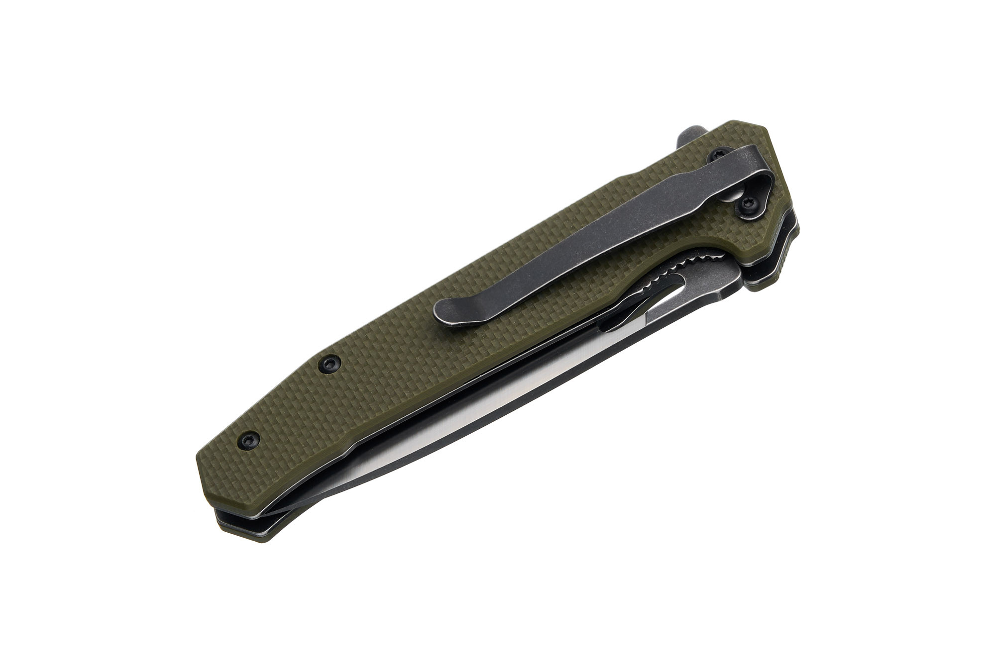 На підтримку цього стилю працюють його прямі, лаконічні контури, невелика ширина рукояті з накладками з G10 кольору хакі, акуратна кліпса з покриттям Black Stonewash.