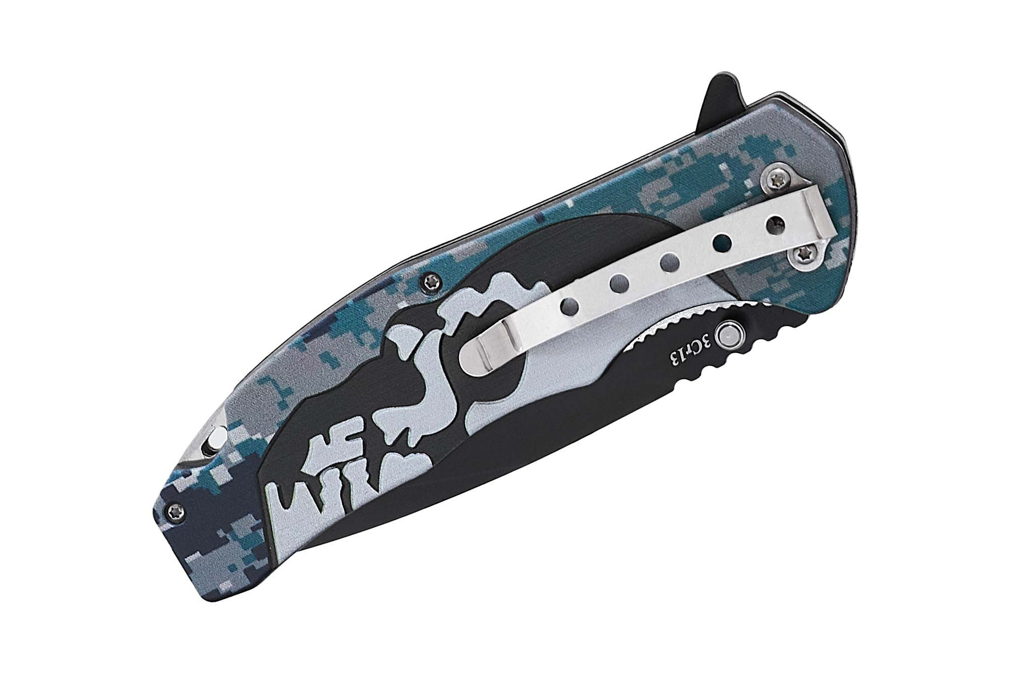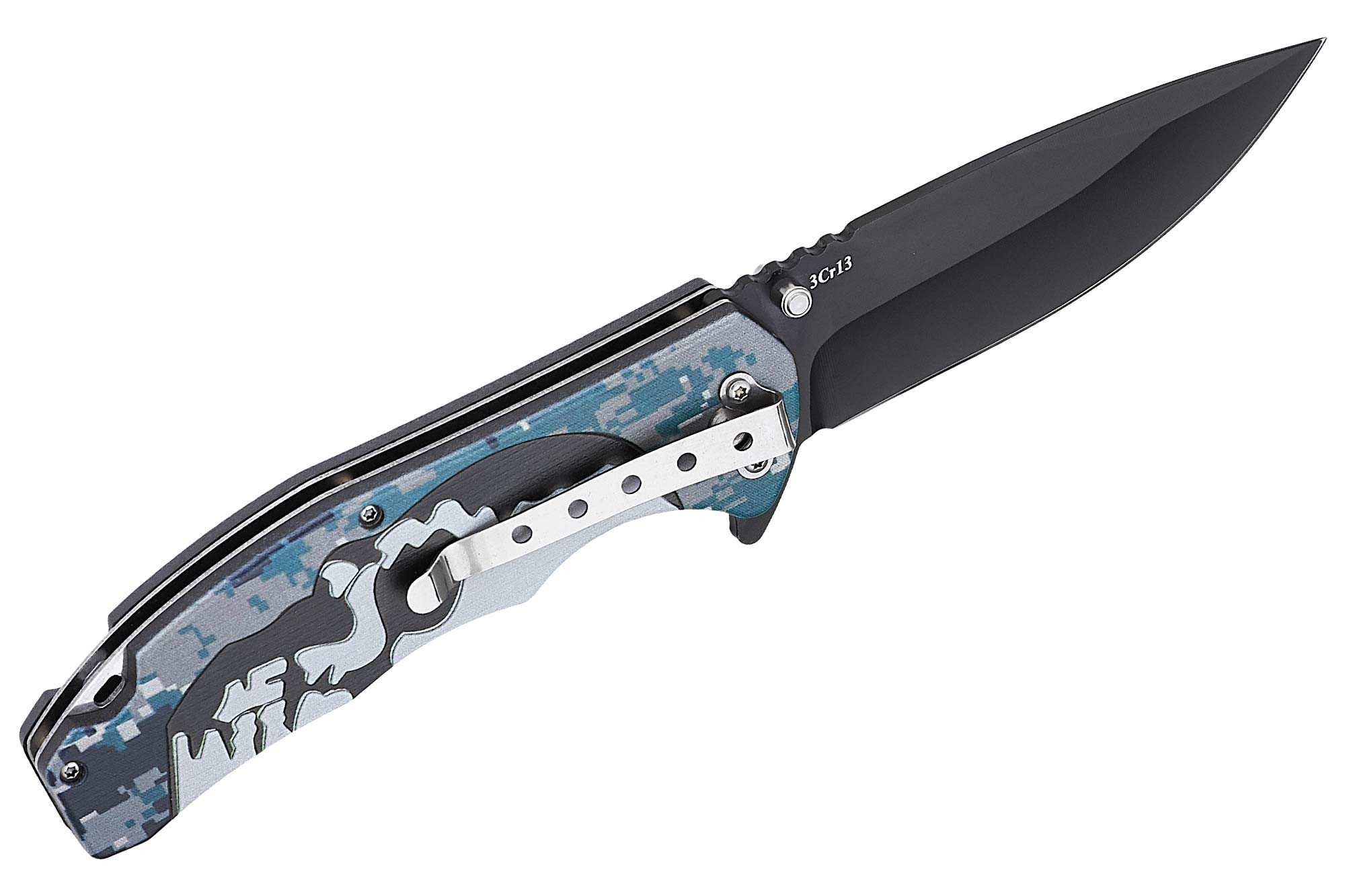 - На рукояти находится удобная клипса, позволяющая надёжно закрепить нож на кармане.