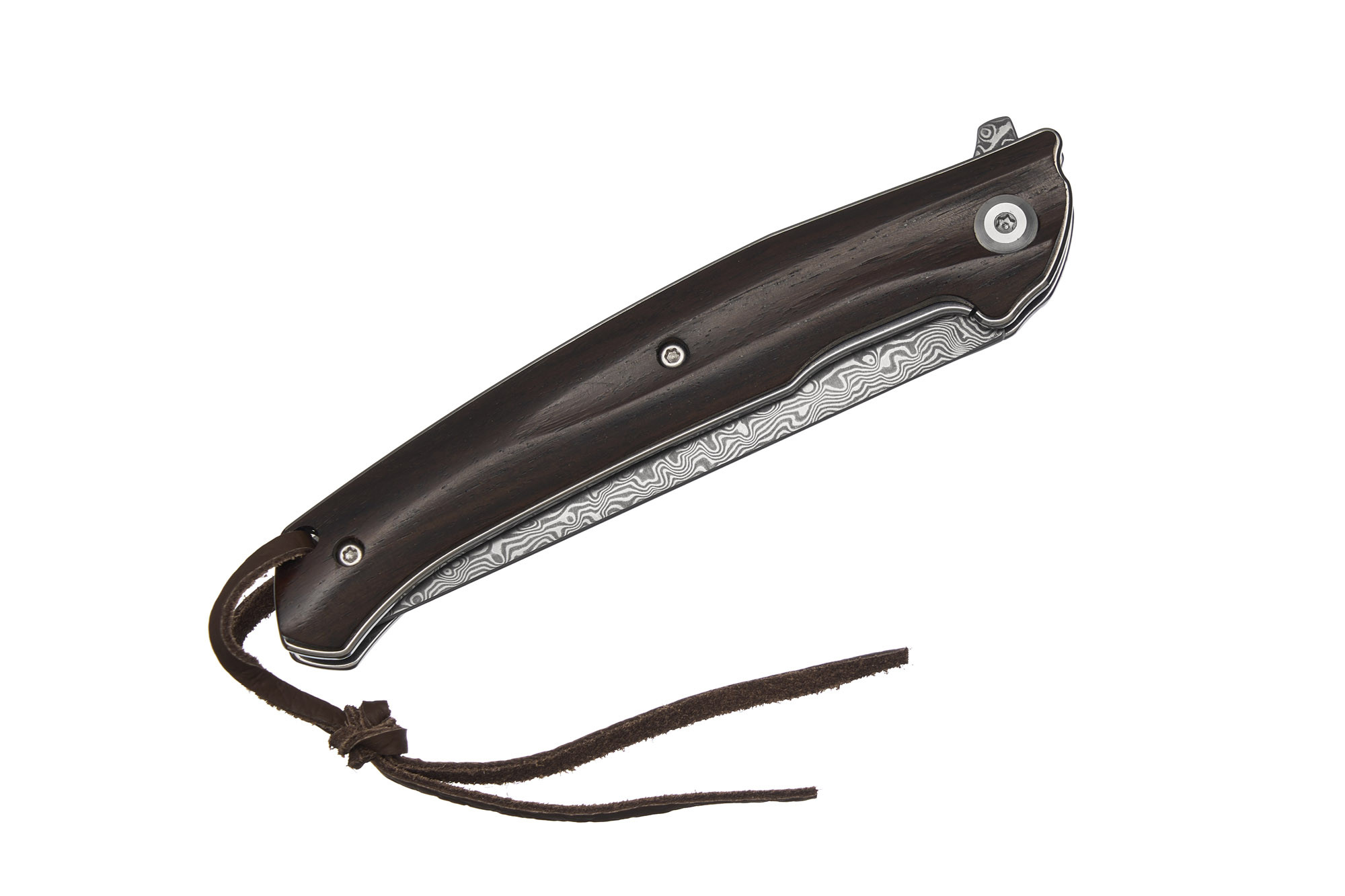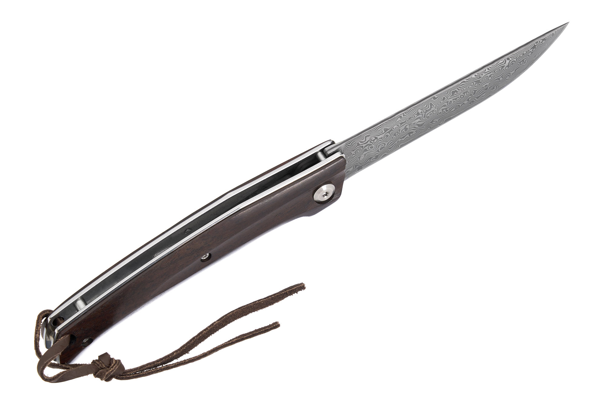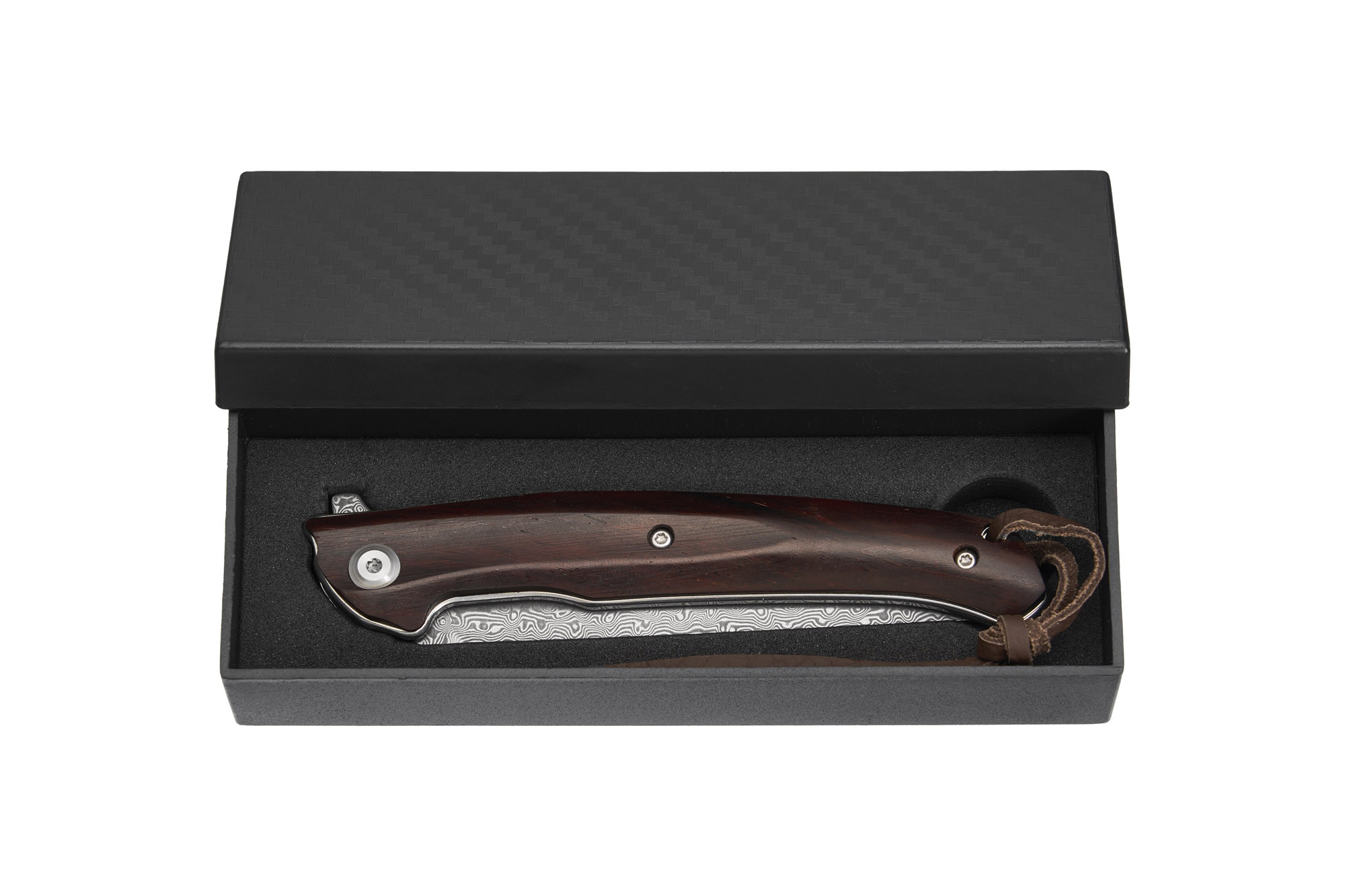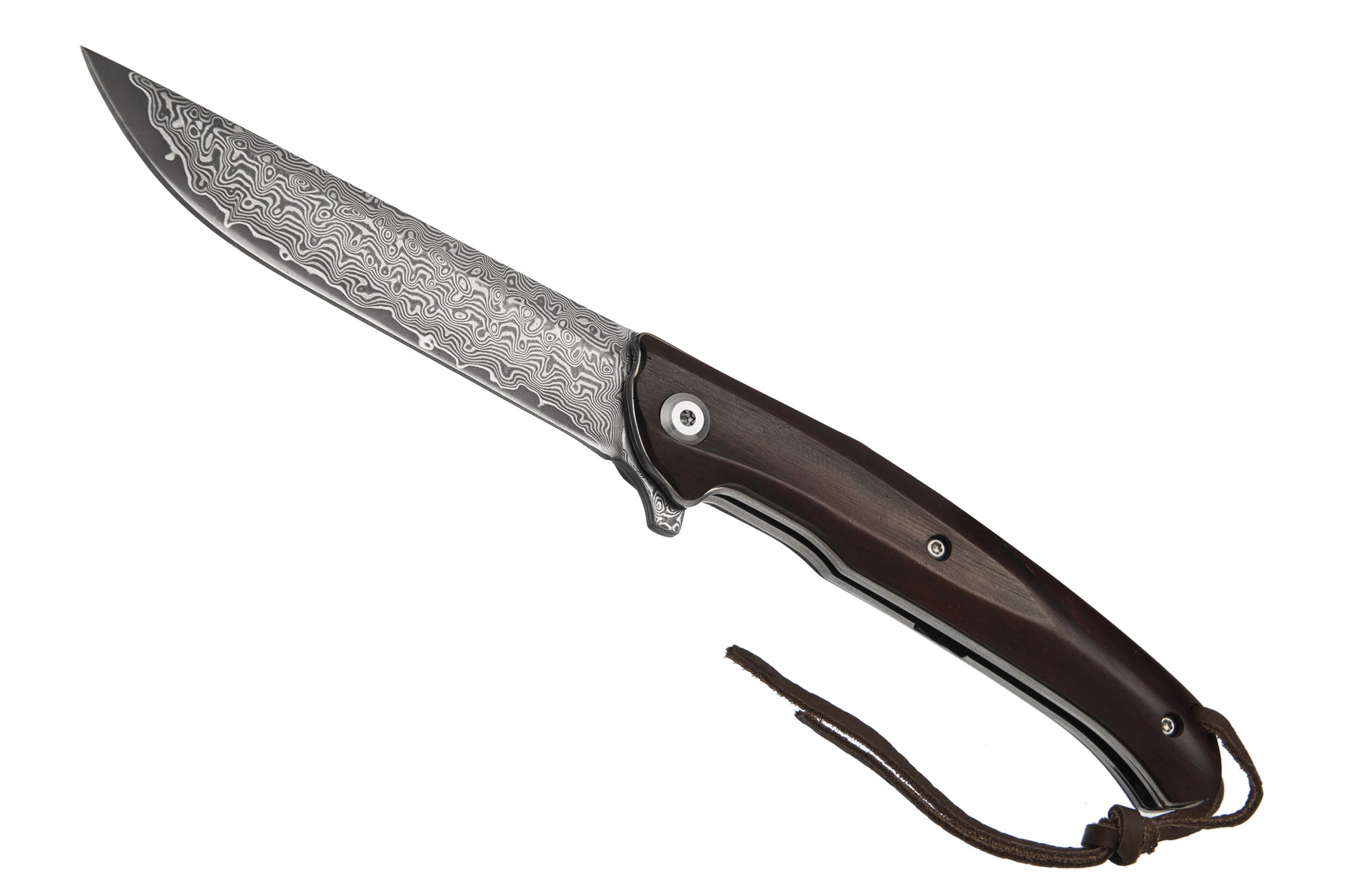 - Наявність темлячного отвору з темлячним шнуром з шкіри додає цьому ножу практичності та стилю.