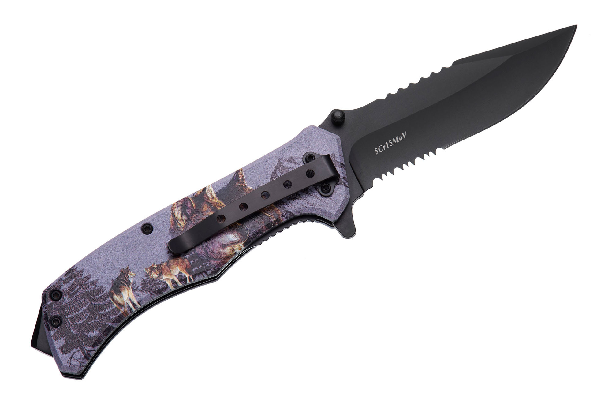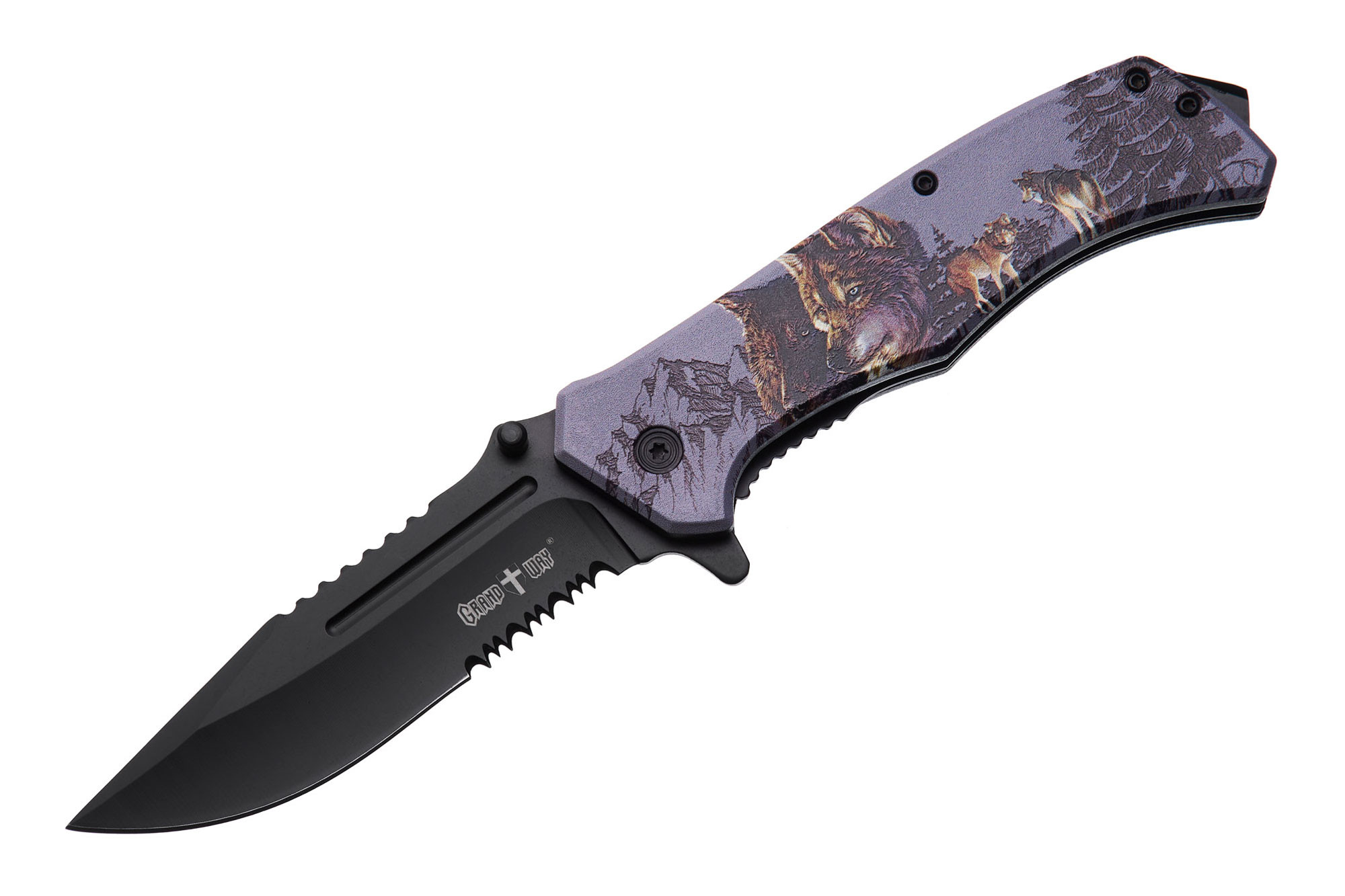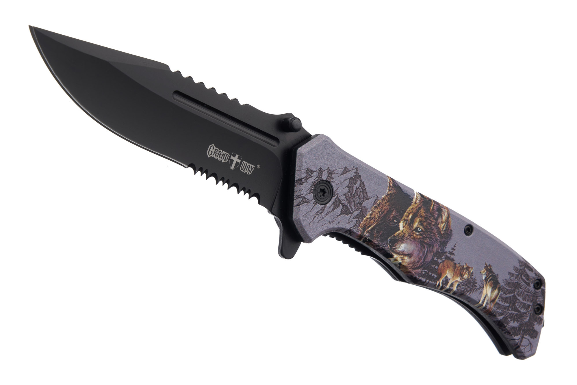 - Частина леза ножа має серейторне (зубчасте) заточування. Серейтор дуже добре ріже мотузки, шнури, ремені, кабелі та канати. До того ж він довго зберігає гостроту і може підстрахувати свого власника, який опинився у ситуації, у якій неможливо вчасне підточування леза.