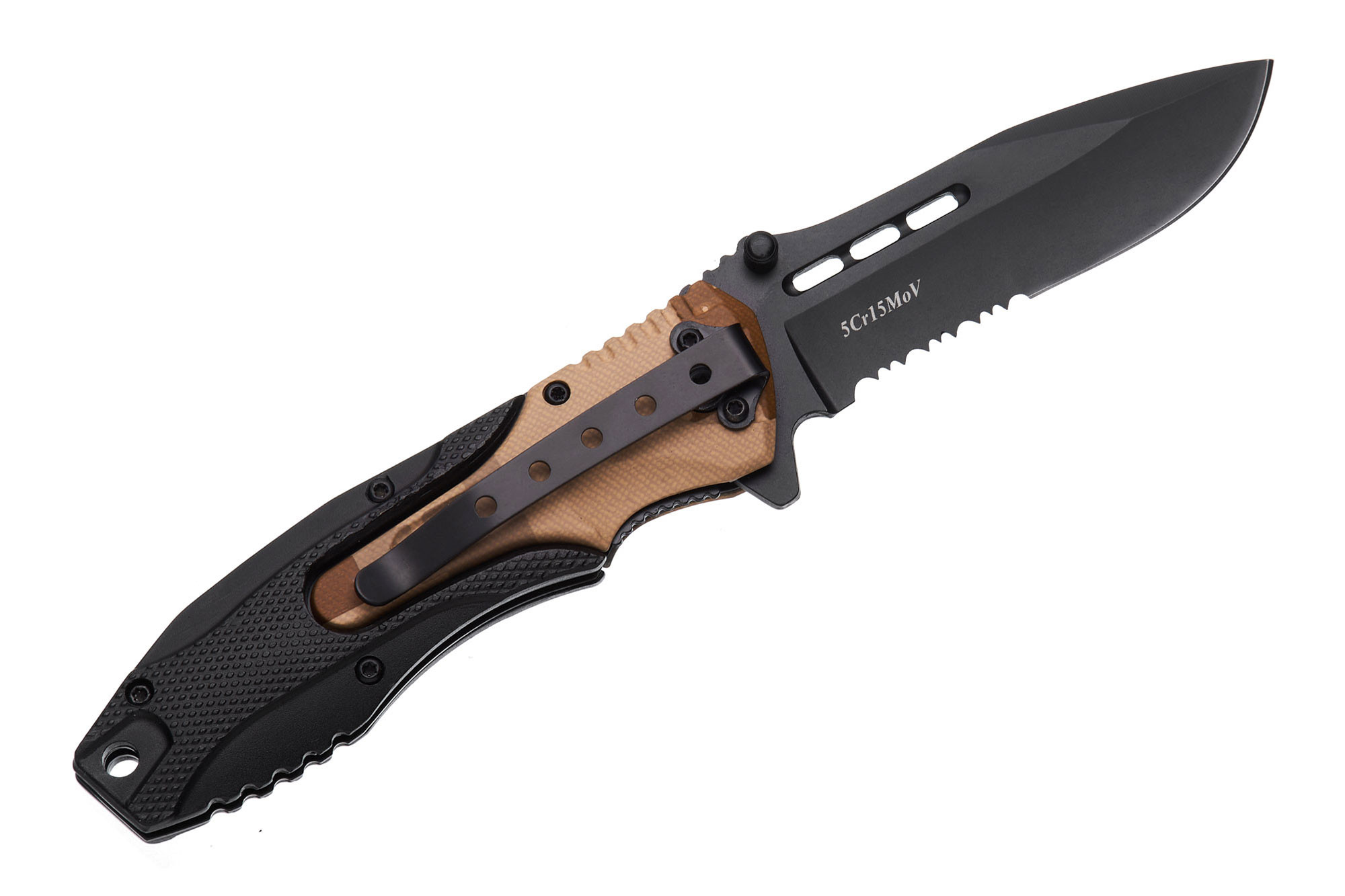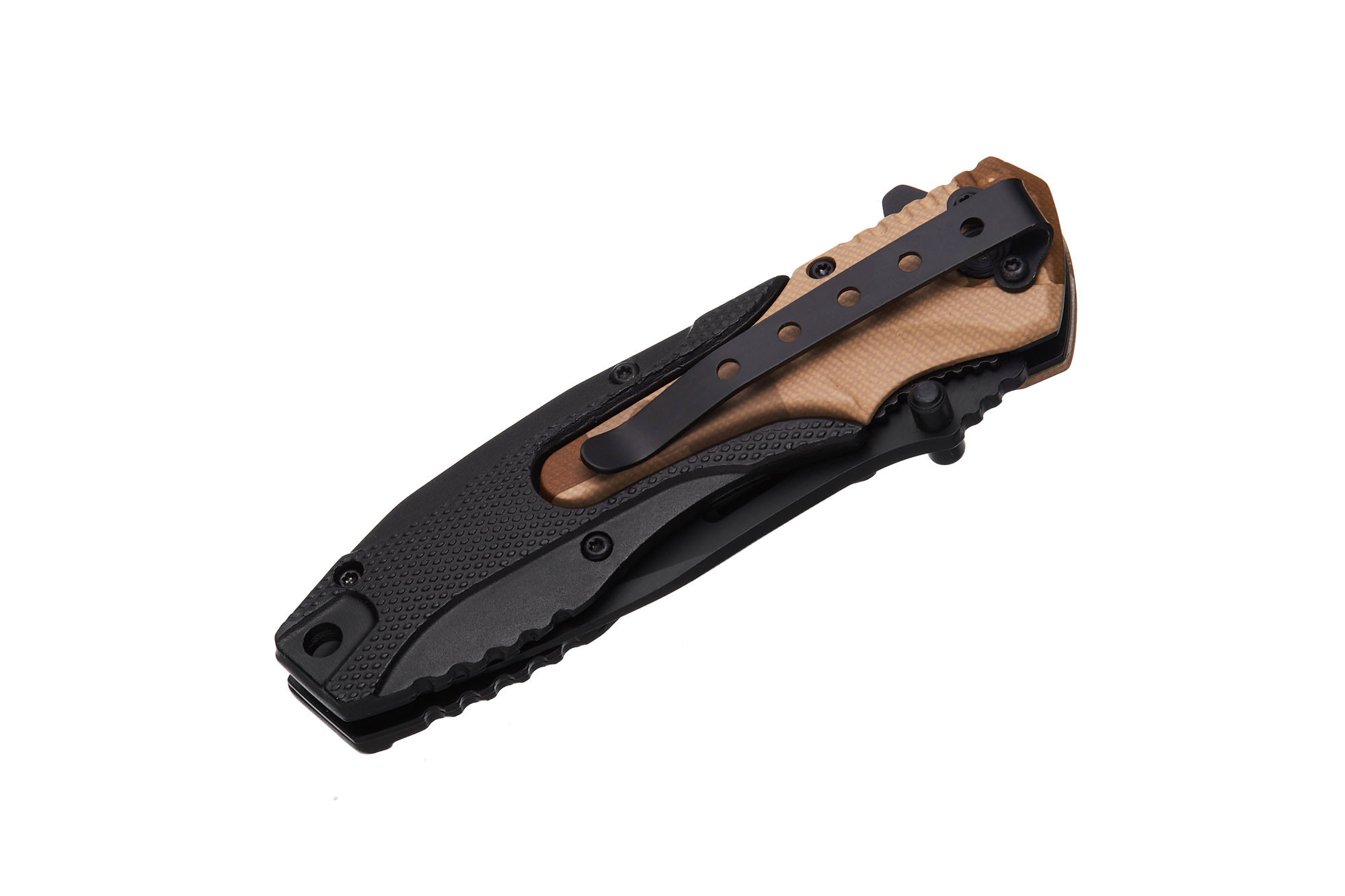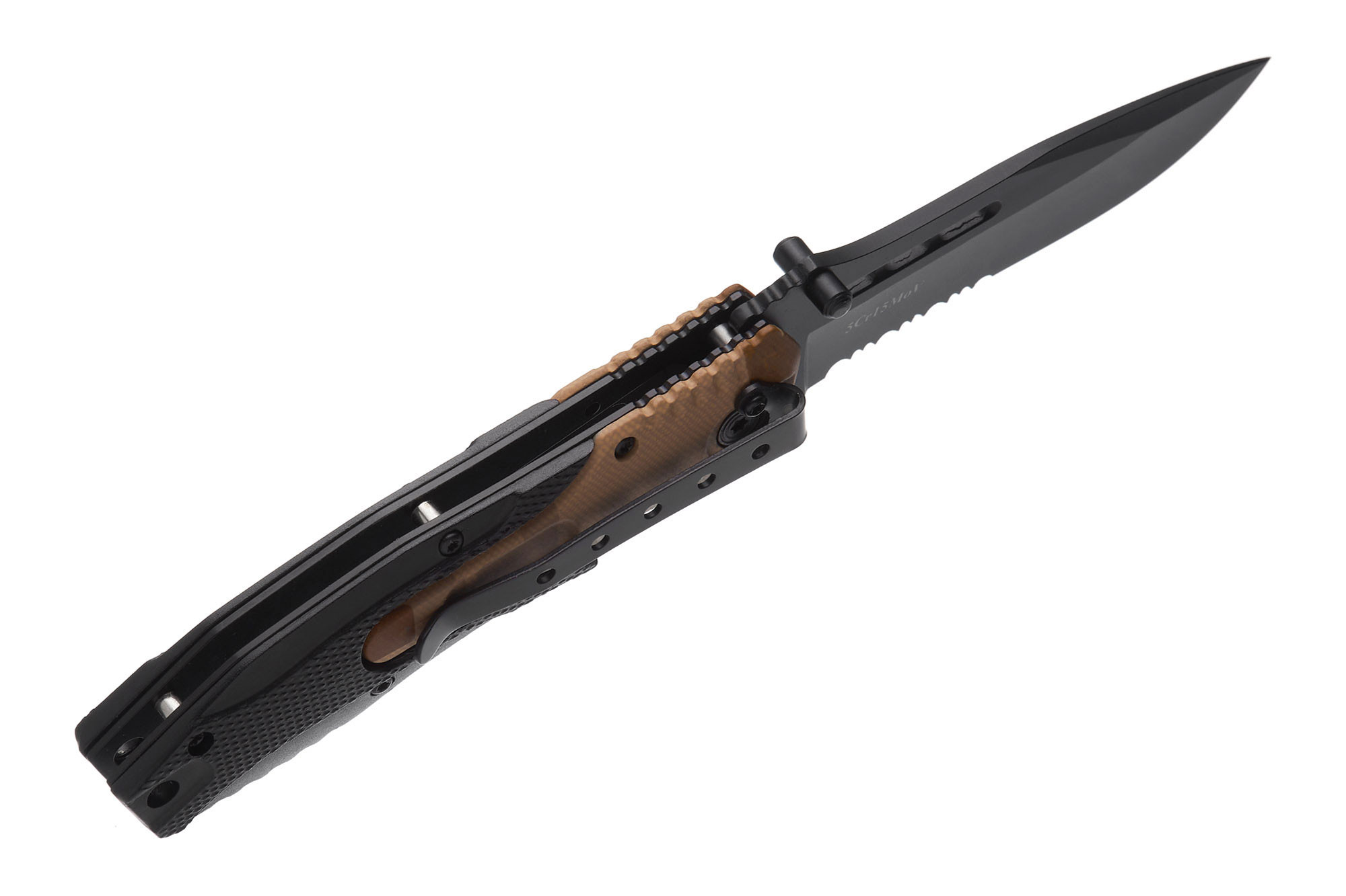 - присутня у осьовому механизмі ножа пружина-асист робить його фактично напівавтоматом (цей ніж можна легко та швидко розкрити однією рукою);