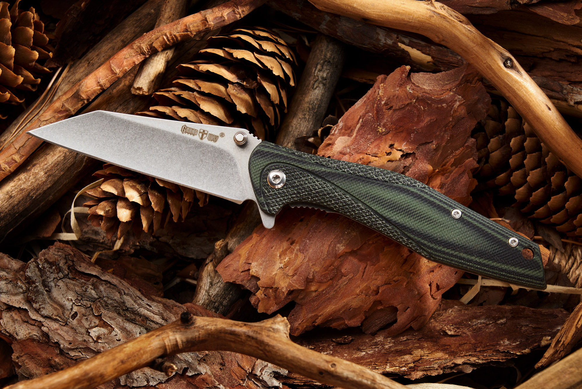 Такий незвичний клинок не завжди виходить вписати в дизайн ножа так, щоби ніж виглядав красиво та гармонійно. Дизайнеру Grand Way WK 19027 це дійсно вдалося. Ніж виглядає красиво та збалансовано. Особливо хотілосяб відмітити дуже цікавий дизайн руків'я.