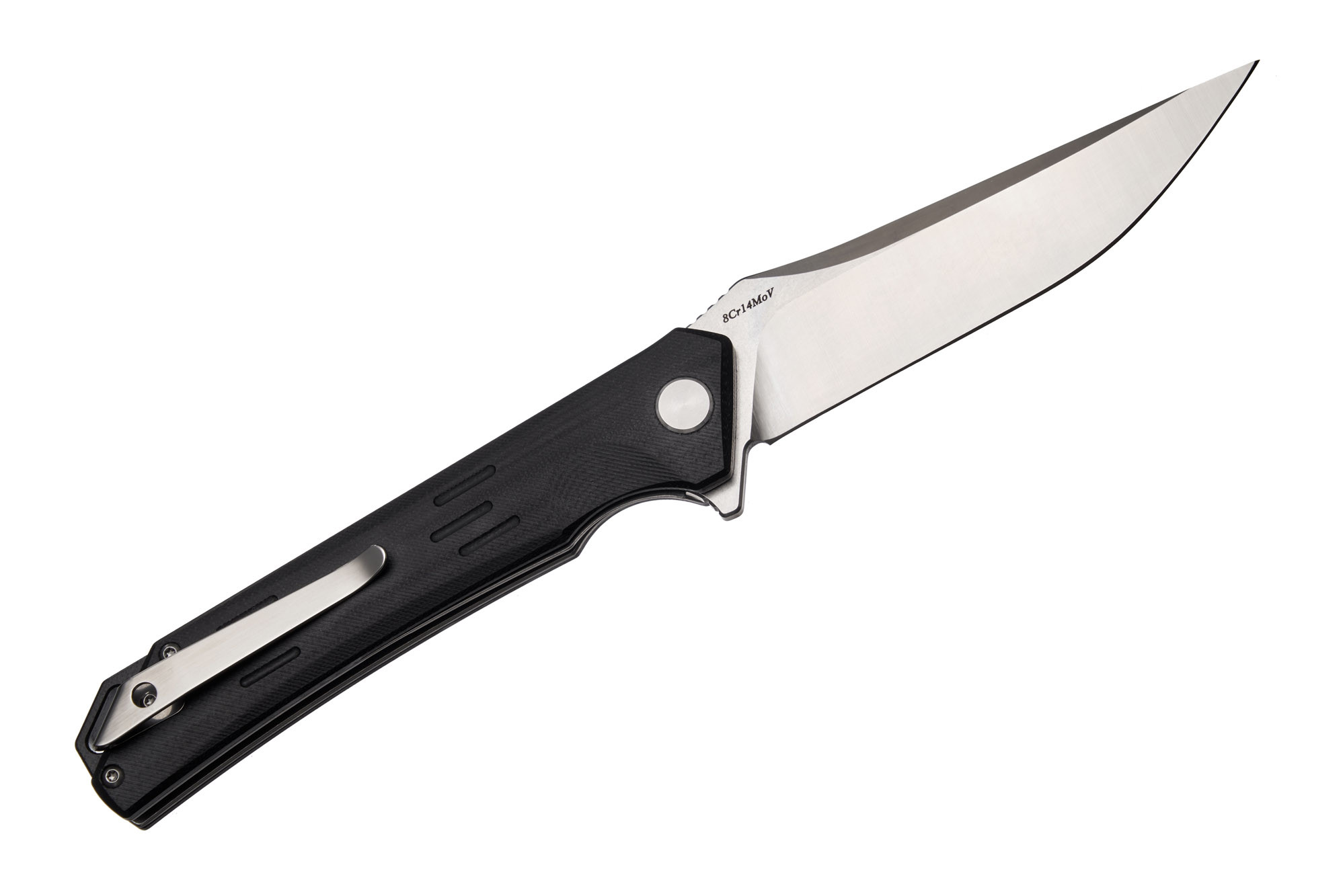 - Клинок із міцної та стійкої нержавіючої сталі 8Cr14MoV довго залишається гострим та не боїться корозії. Сталь 8Cr14Mov відрізняється від 8Cr13MoV великим вмістом хрому, що позитивно впливає її стійкість до корозії. Ця сталь активно застосовується багатьма відомими виробниками ножів.