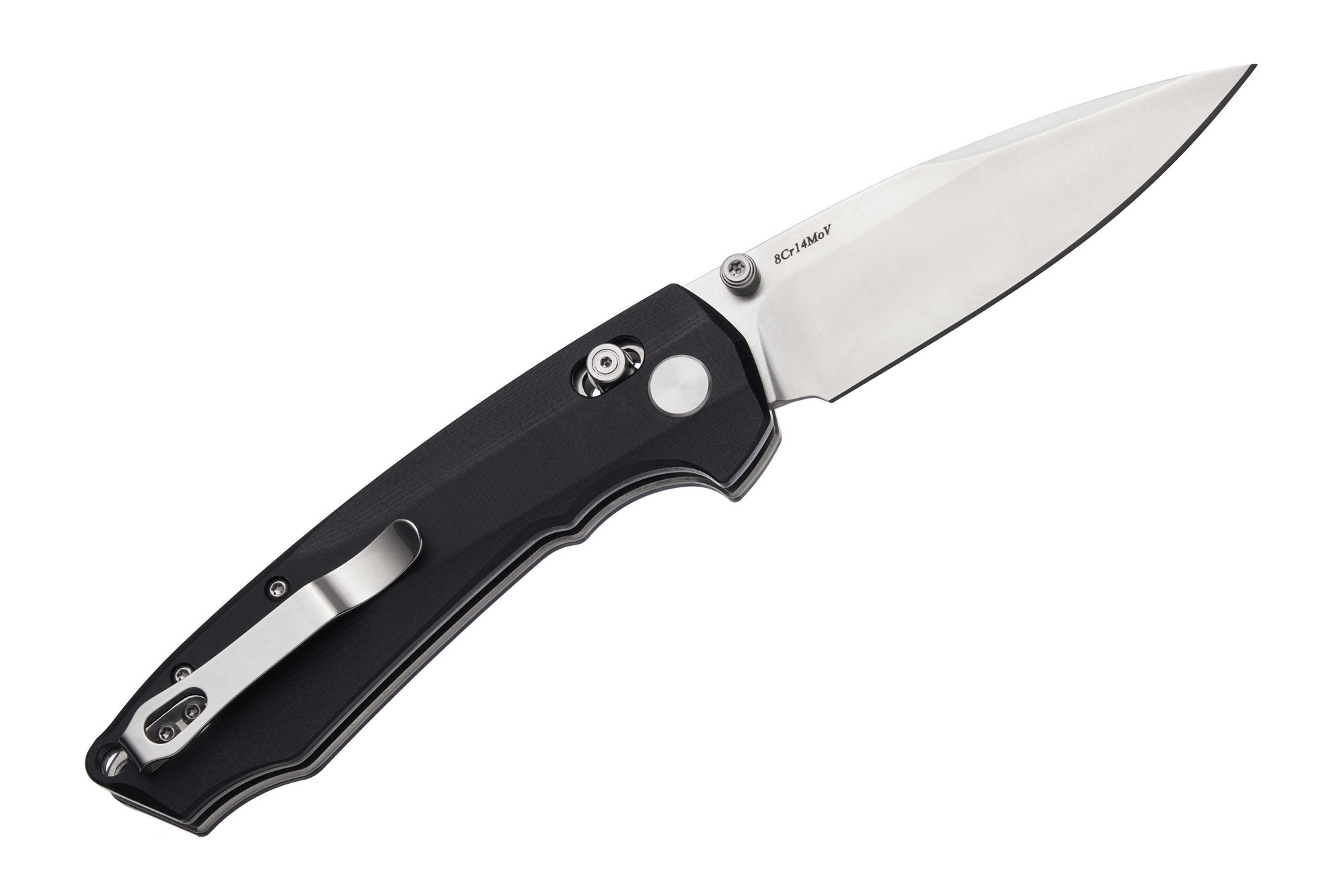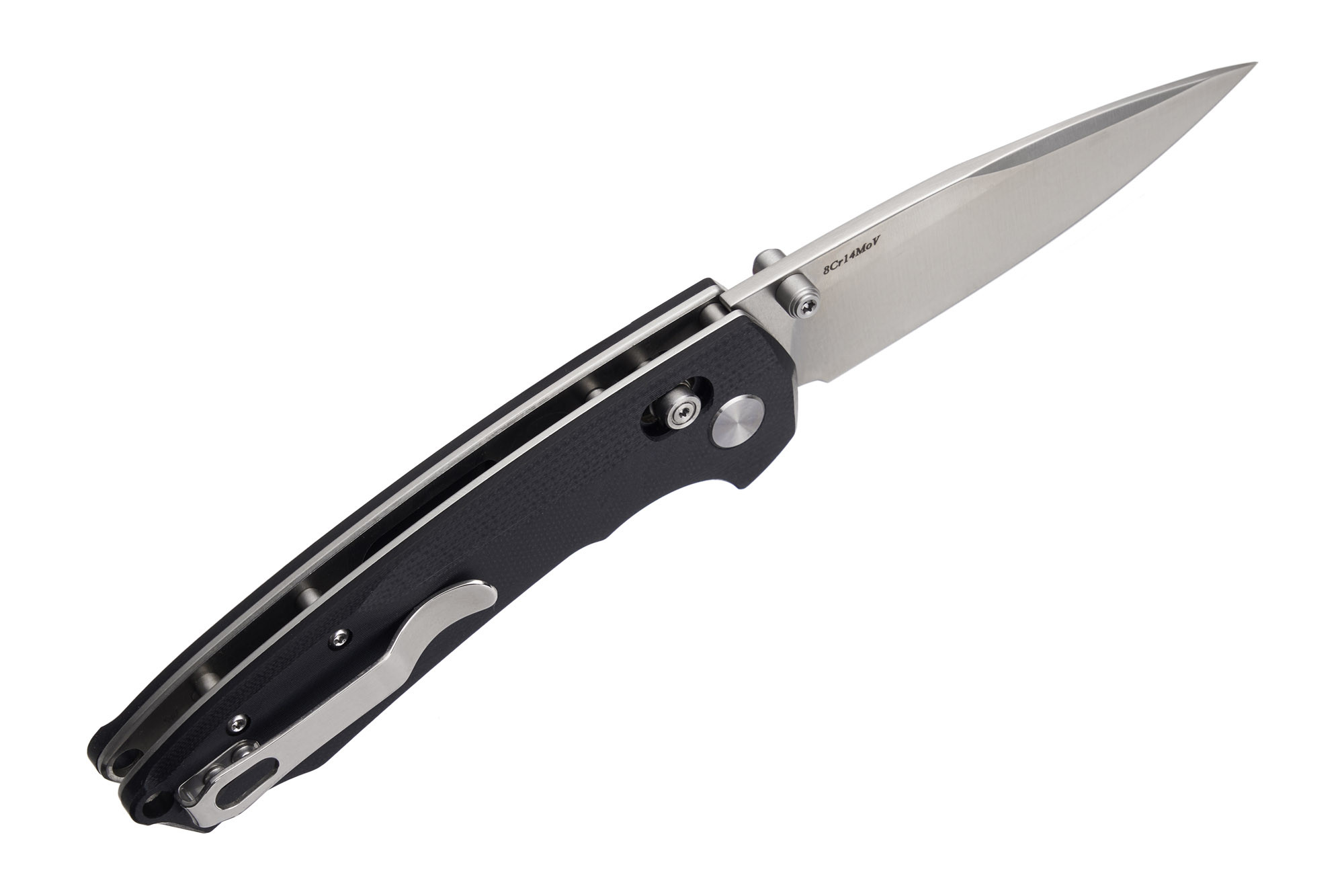 Клинок ножа виготовлений із нержавіючої сталі 8Cr14MoV. Це – дуже якісна та міцна нержавіюча сталь. Вона дещо переважає за своїми характеристиками сталь 8Cr13MoV. Підвищений вміст молібдену покращує пружність та міцність сталі, а також її корозійну стійкість. Клинки з 8Cr14MoV дійсно не іржавіють і довго залишаються гострими. Ця сталь є однією з найкращих у своїй ціновій категорії.
