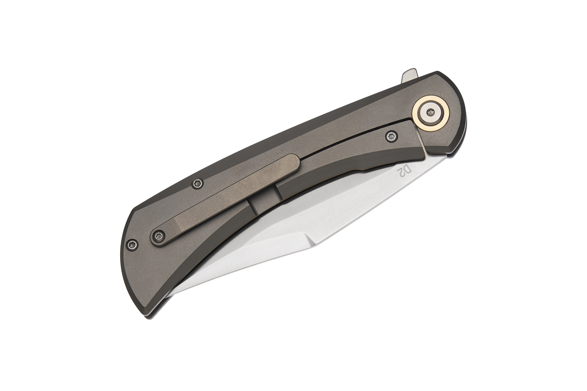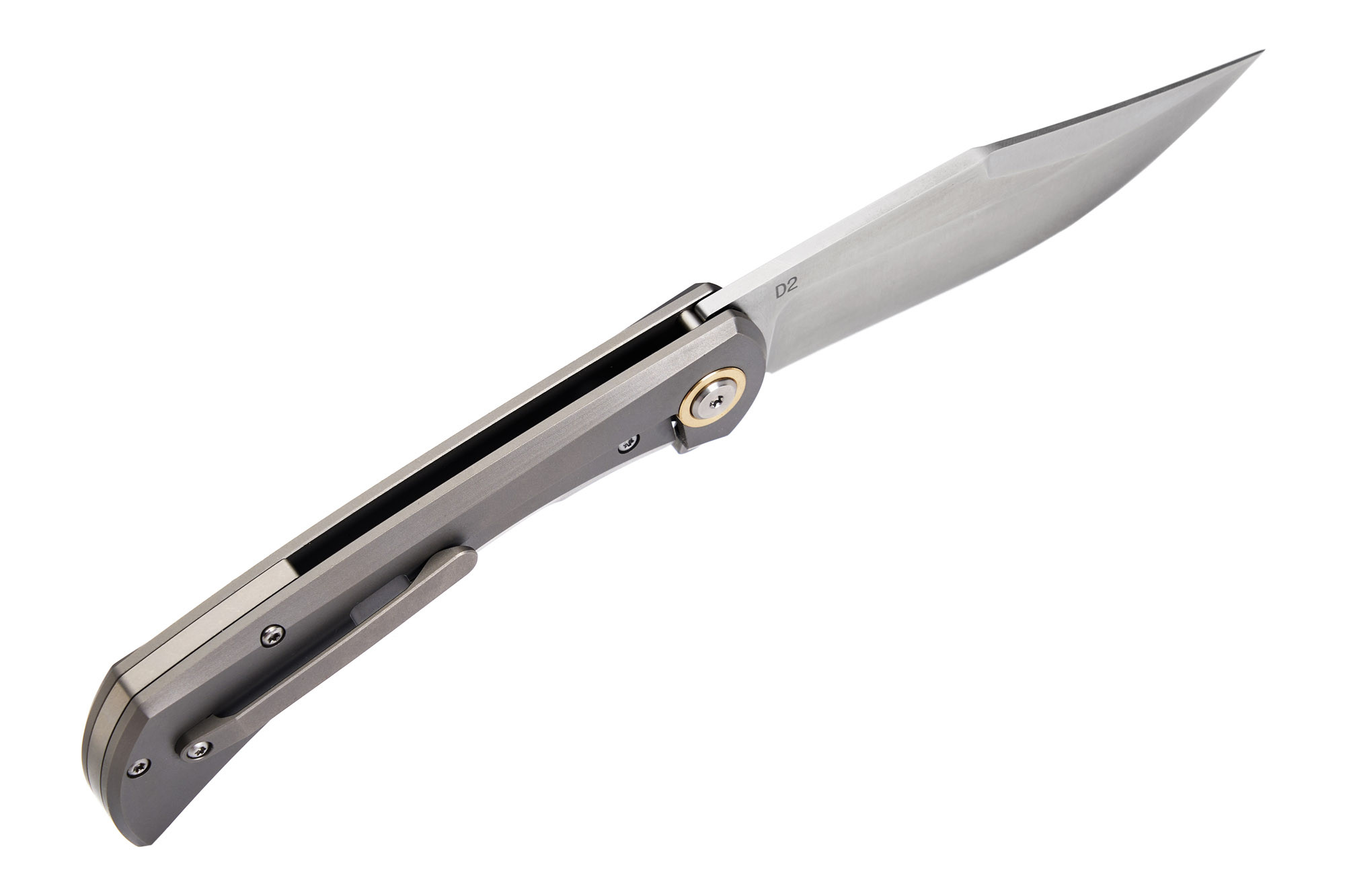 Клинок із високоякісної сталі D2 забезпечує довговічність та чудову гостроту, а руків’я з титанового сплаву надає ножу легкості та міцності. Простий та надійний замок типу frame lock забезпечує безпечне використання ножа за будь-яких умов. Сталь D2 та титановий сплав є ознаками високої якості.