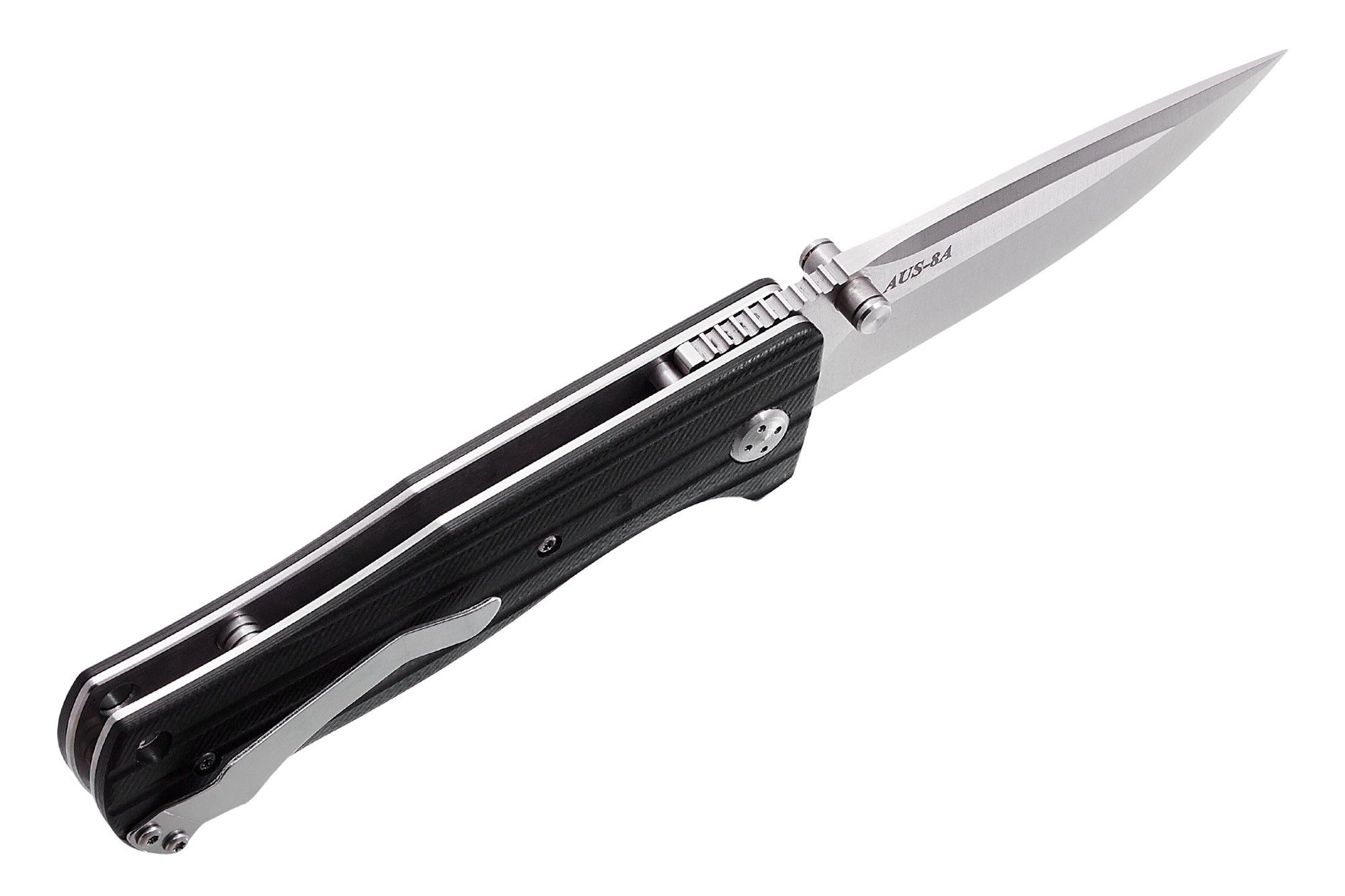 Сам клинок этого складного ножа изготовлен из оптимальной стали AUS-8A. AUS-8A изначально создавалась как ножевая, из нее делаются не только обычные фолдеры, но кухонные ножи. По названию она похожа на своего более известного «собрата» – обычную AUS-8.