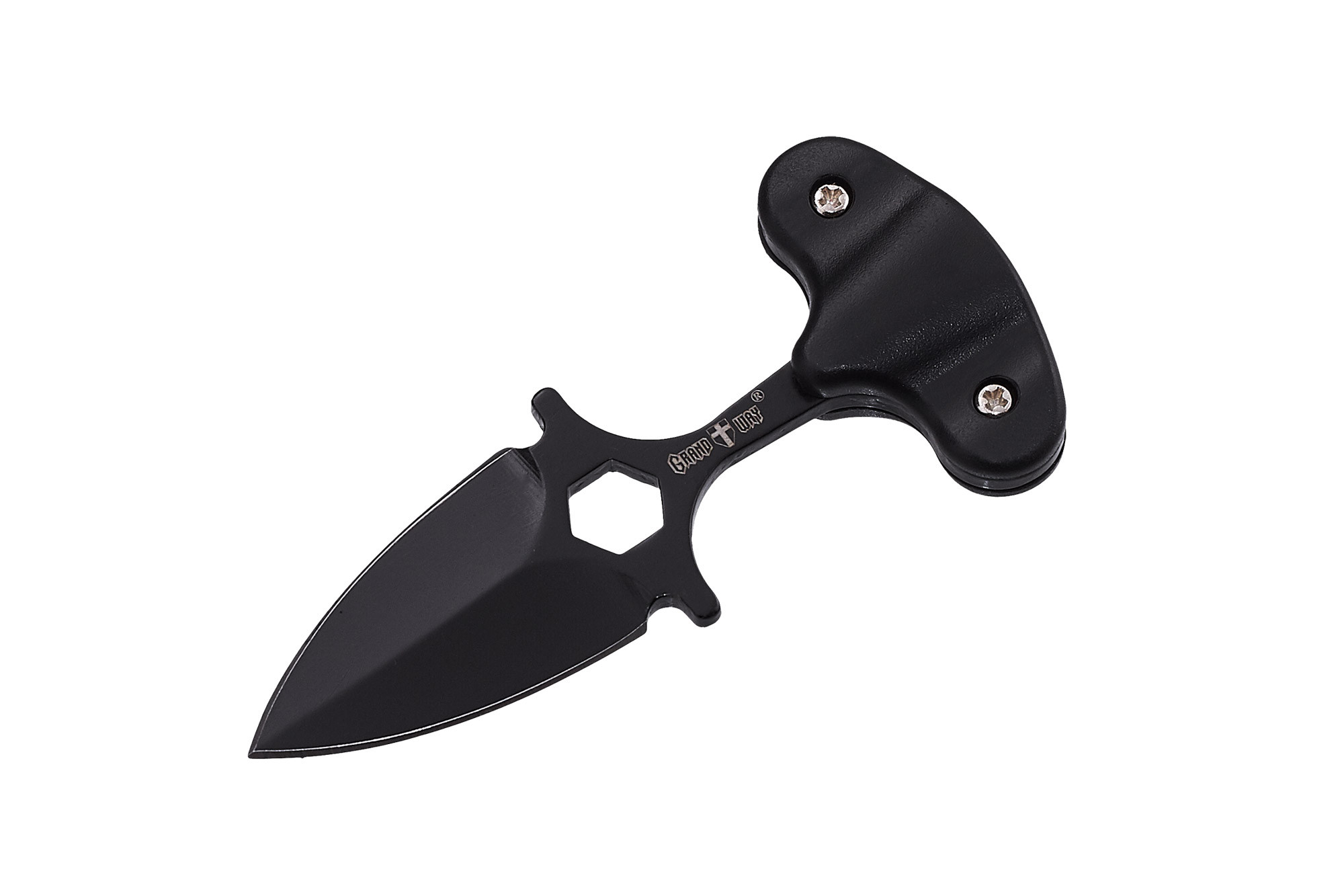 Выполнен из нержавеющей фабричной 3Cr13 стали в черной расцветке. Данная сталь хорошо точится и не склонна к выкрашиванию. Особенностью этой модели является наличие отверстие под шестигранник под палец.
