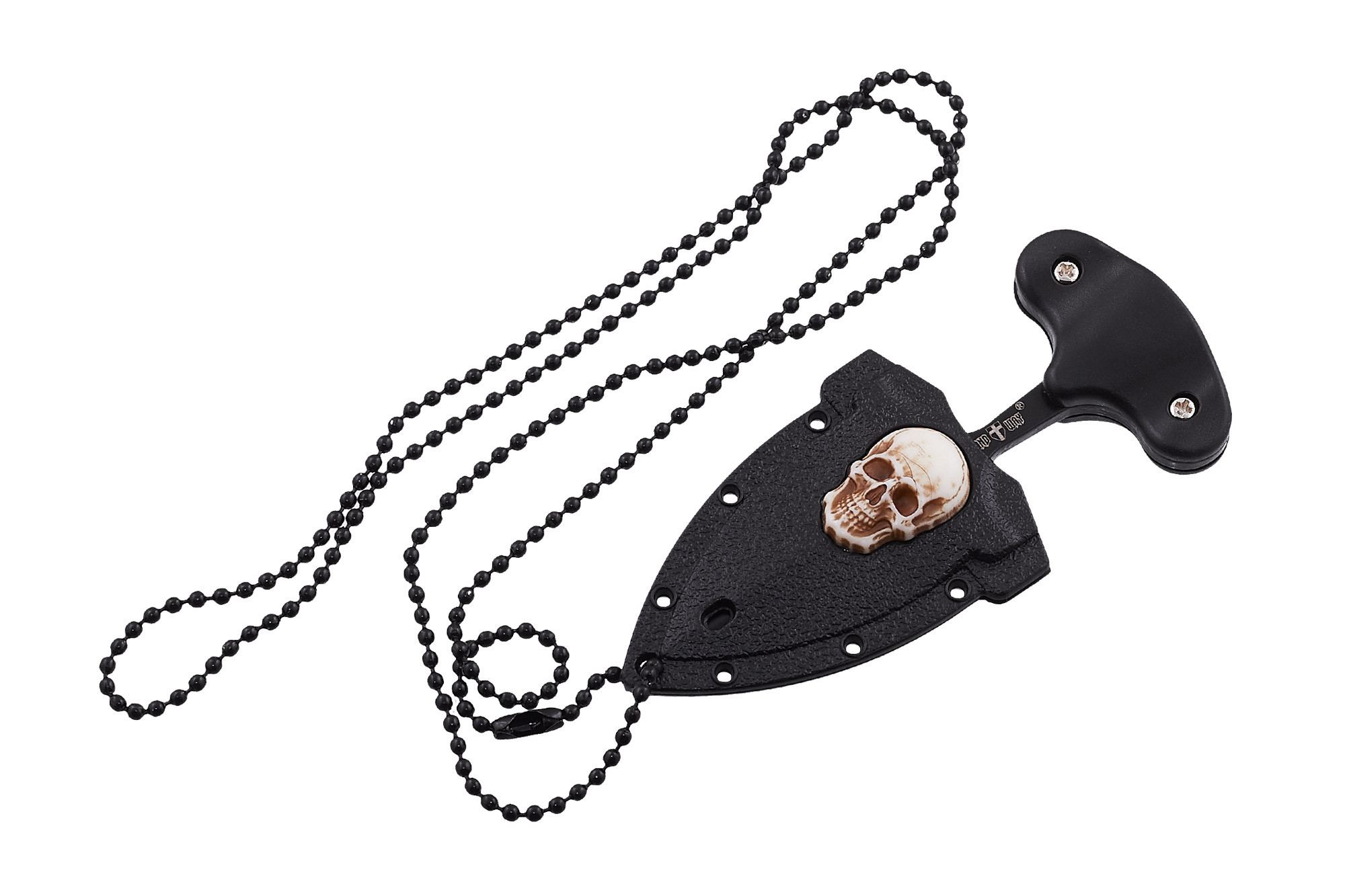 Для хранения и транспортировки в комплекте предусмотрены пластиковые ножны. Которые сделаны точно по форме клинка и надежно удерживают его в любом положении, исключая случайное выпадение. Также нож идет в комплекте с цепочкой, делающей его удобным для ношения на шее.
