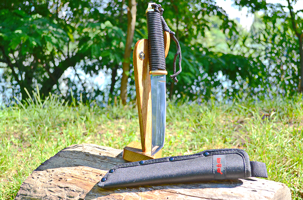 Руків’я ножа прямокутне у поперечному перетині, міцне і по-спартанські просте: на широкий хвостовик ножа для надання додаткового об'єму накладено дві дерев'яні накладки, на яких зроблено намотування з міцного шнура на кшталт паракорду.