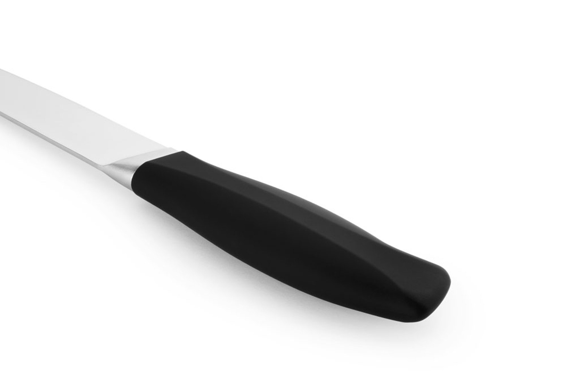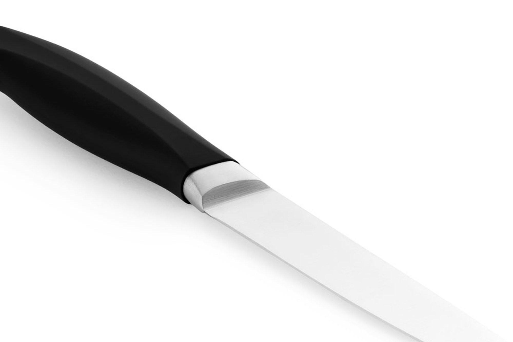 Ножі серії House Cook поєднують в собі стиль, зручність і надійність. Леза з високоякісної німецької сталі 1.4116 мають елегантний сріблястий відтінок, що ідеально гармонує з матовими чорними руків'ями. Завдяки сучасному мінімалістичному дизайну, ці ножі виглядають не тільки функціонально, але й стильно, що додає їм особливої привабливості.