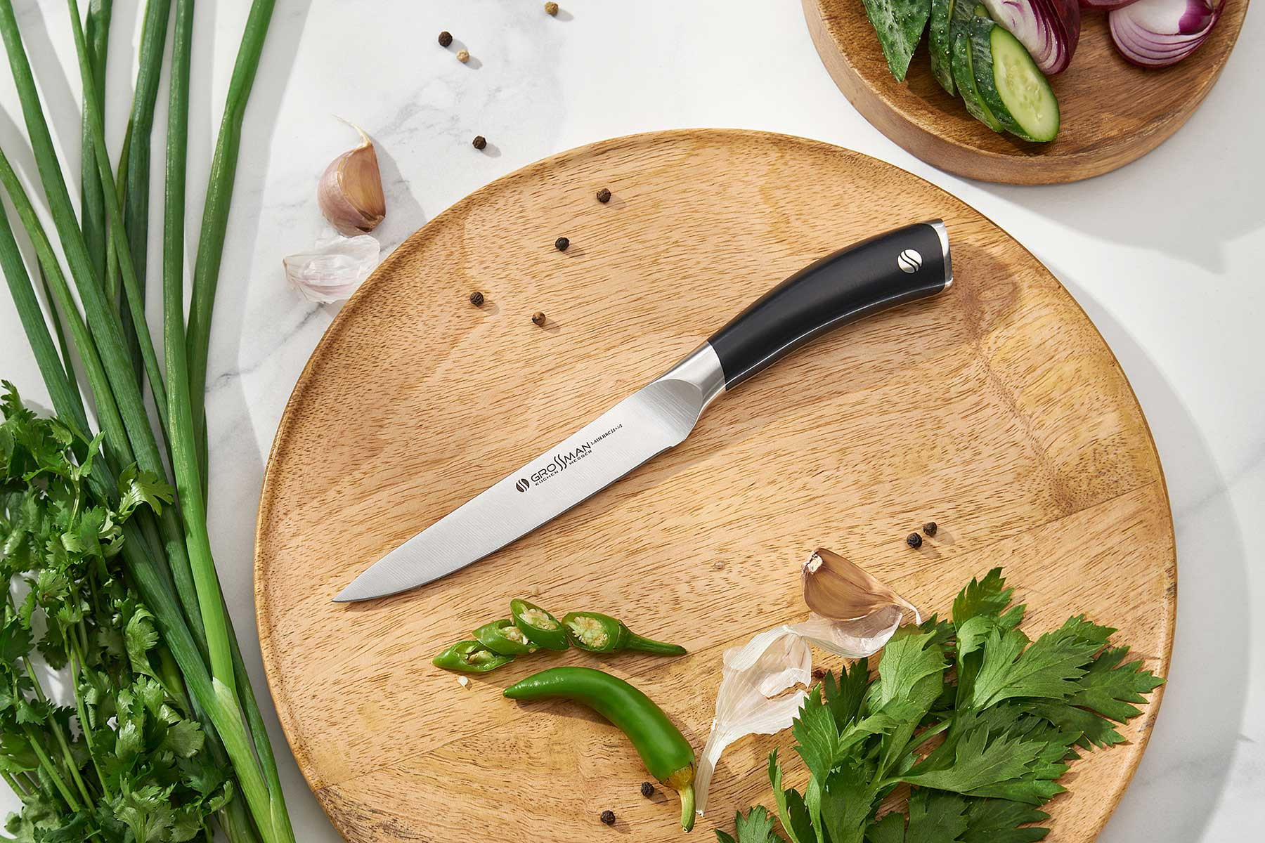 Звичайно, кожен кухар скаже, що кухонний ніж має бути якісним ножем. І нехай, на домашній кухні ковані ексклюзиви для профі часто виглядають деякою надмірністю, все ж таки, розумним буде купити універсальний ніж з якісної нержавіючої сталі за розумною ціною. І саме таким оптимальним варіантом, що поєднує розумну ціну та гідне виконання, є кухонні ножі від GROSSMAN.
