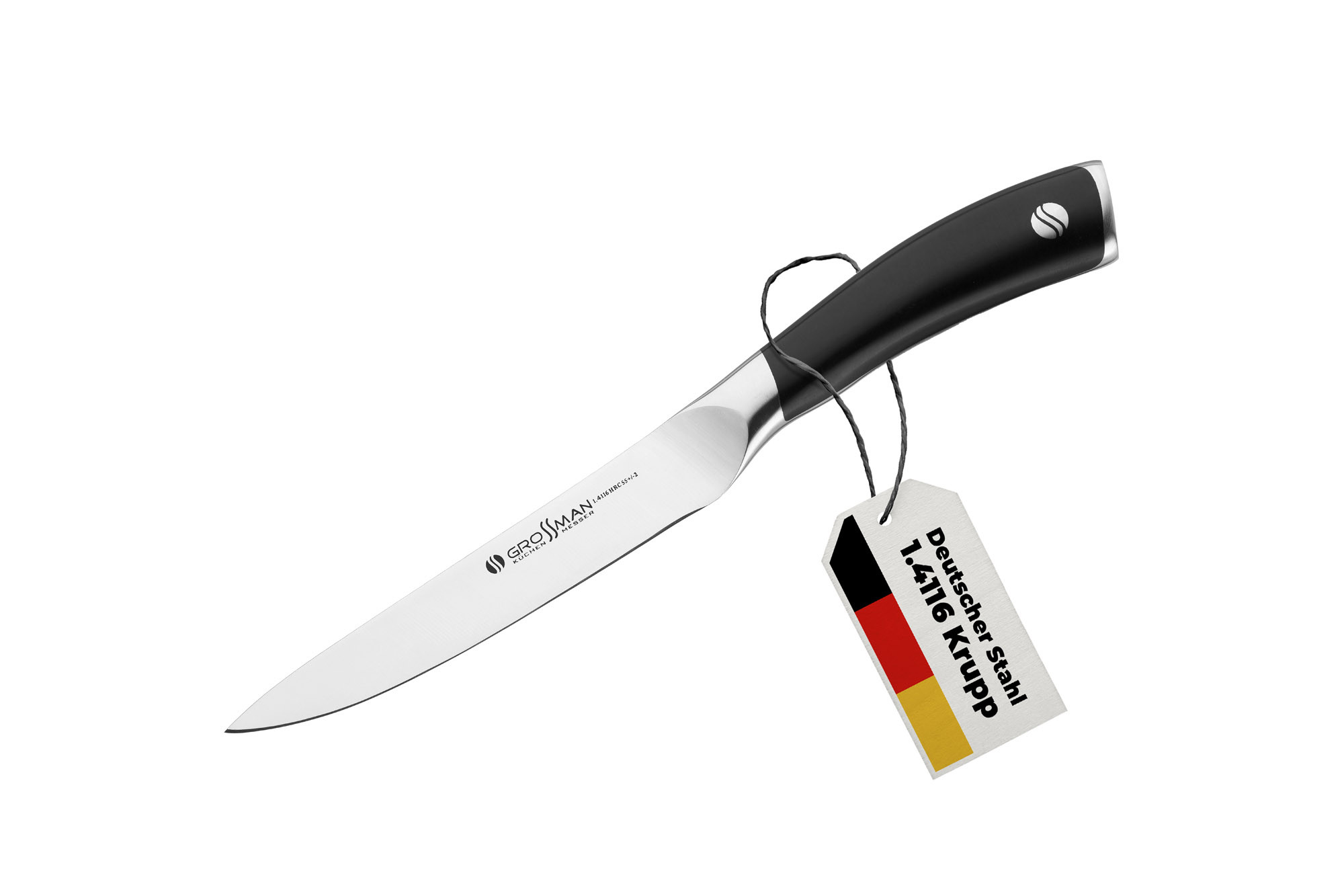 Ножі та клівера зі сталі 1.4116 – приклад справжньої європейської якості. Розумне та надійне вкладення ваших грошей. Ножі серії GROSSMAN ELITE PRO порадують вас у роботі та правильно прослужать вам довгі роки.