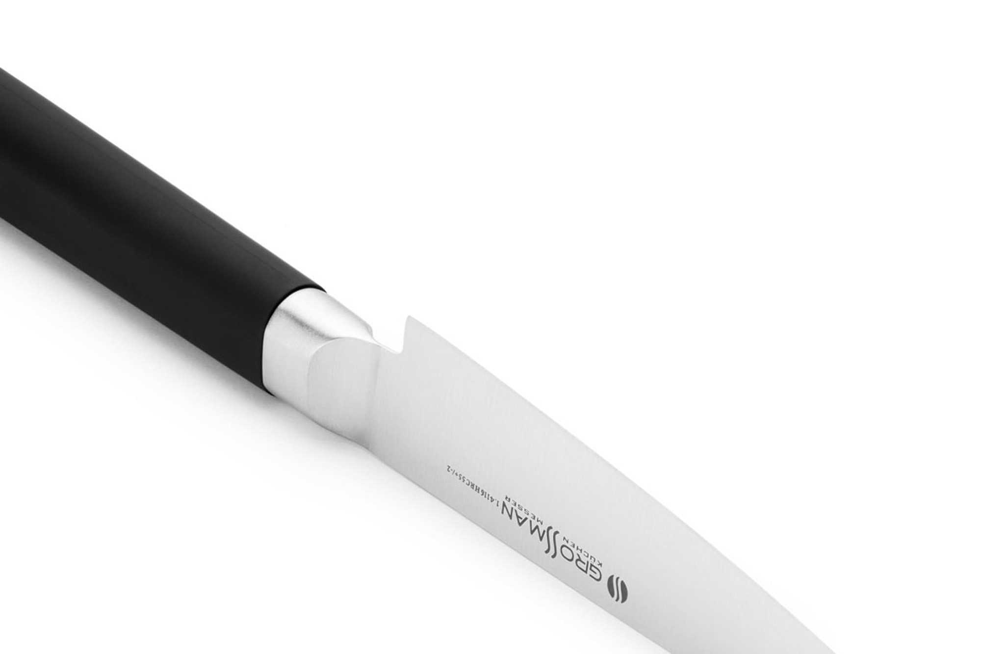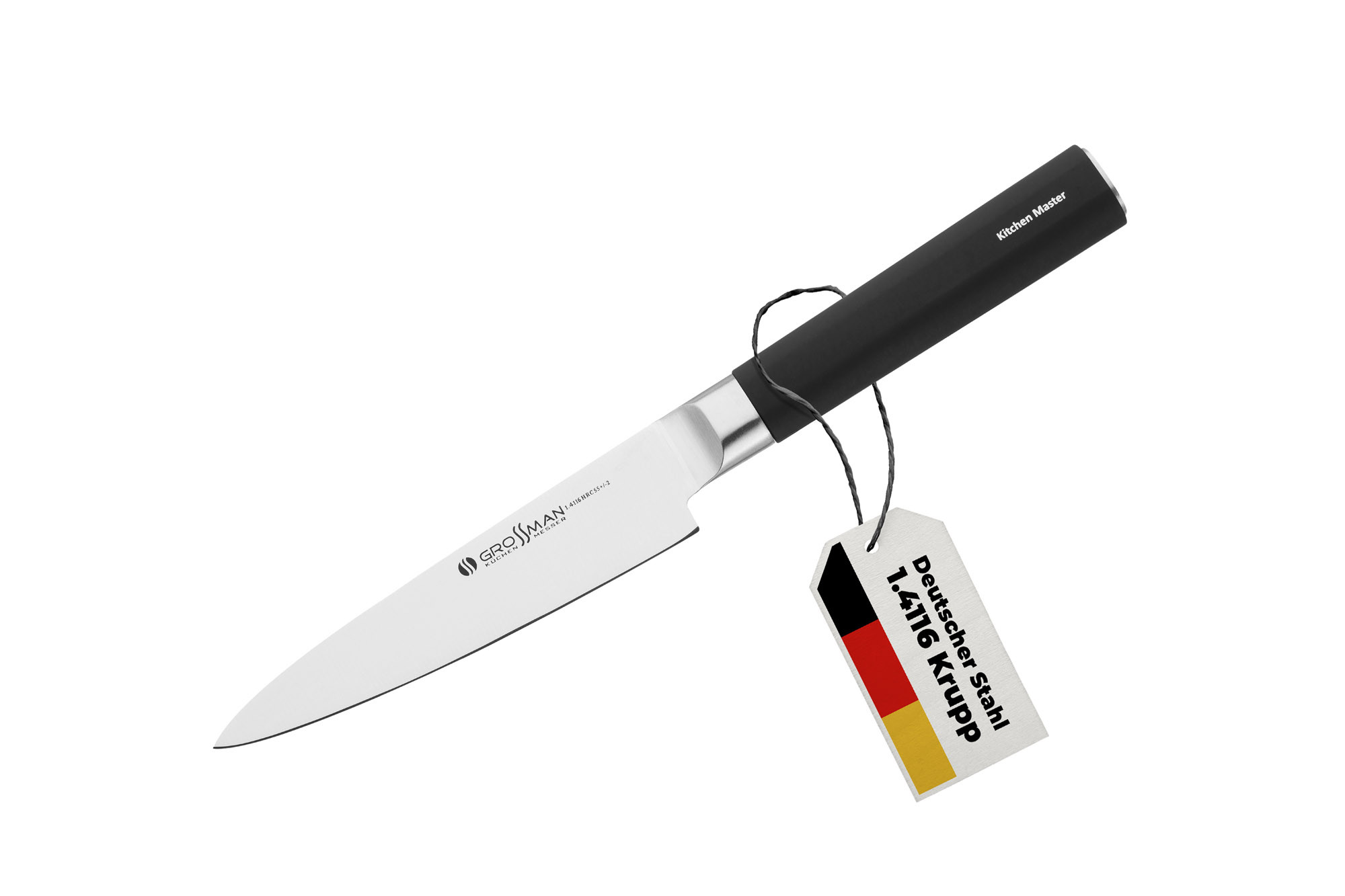 Звичайно, кожен кухар скаже, що кухонний ніж має бути якісним ножем. І нехай, на домашній кухні ковані ексклюзиви для профі часто виглядають деякою надмірністю, все ж таки, розумним буде купити універсальний ніж з якісної нержавіючої сталі за розумною ціною. І саме таким оптимальним варіантом, що поєднує розумну ціну та гідне виконання, є кухонні ножі від GROSSMAN.